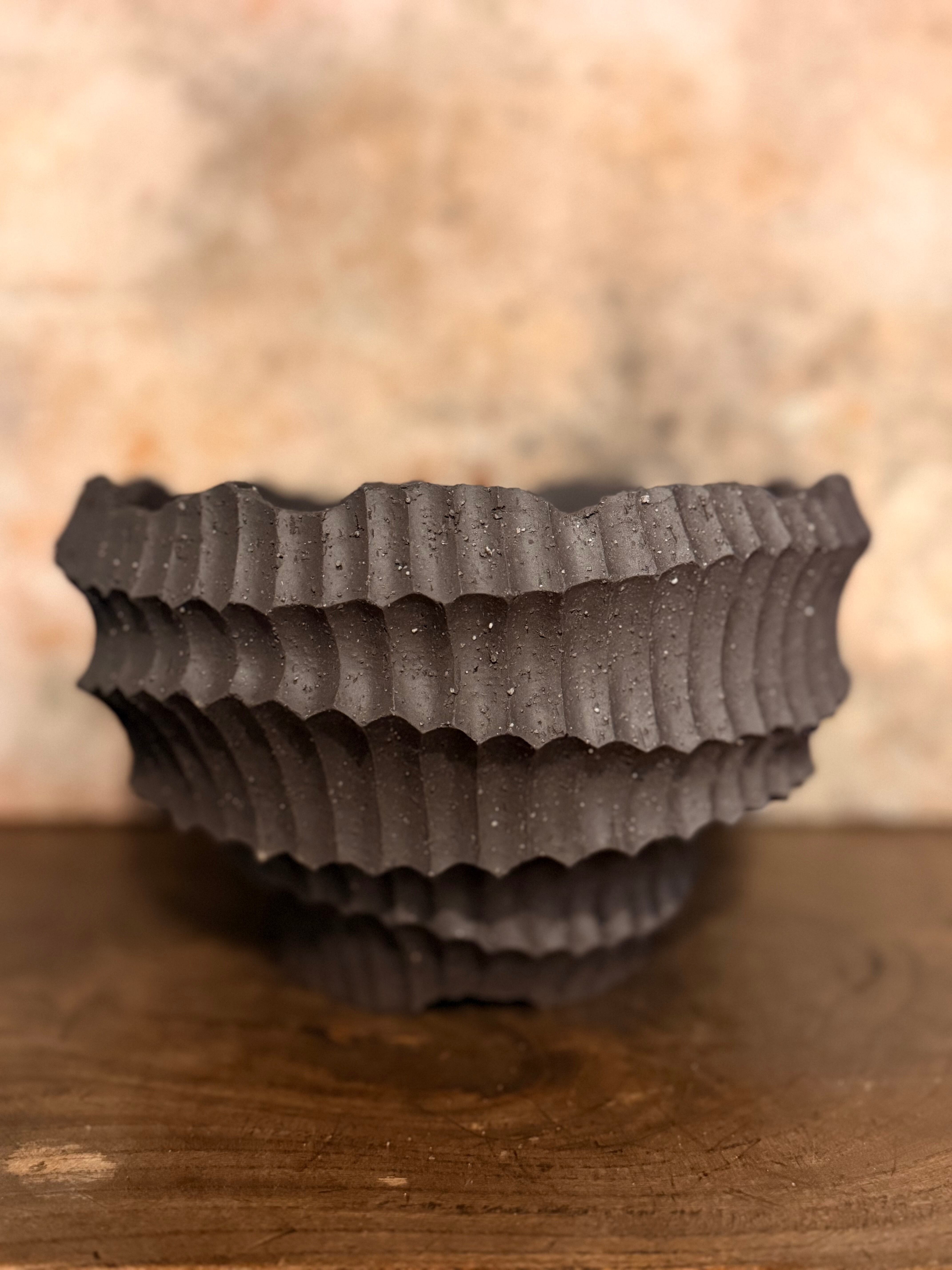 釉薬を一切使わず、更に荒目の土を使う事で、抜群の吸水性/速乾性をほこる一品。鉢の凹凸が陰影を生み景色としても楽しめる仕上がりになっております。