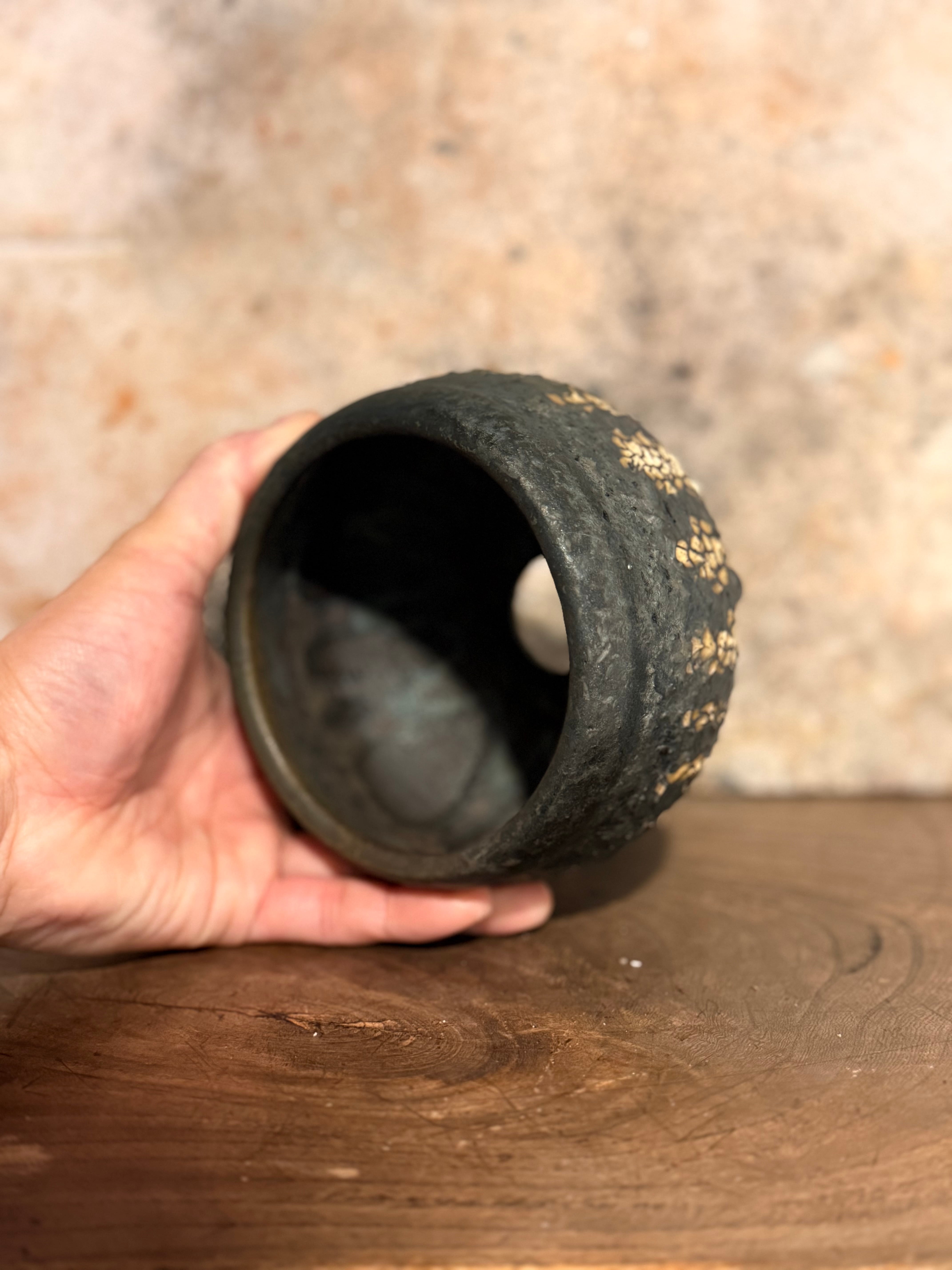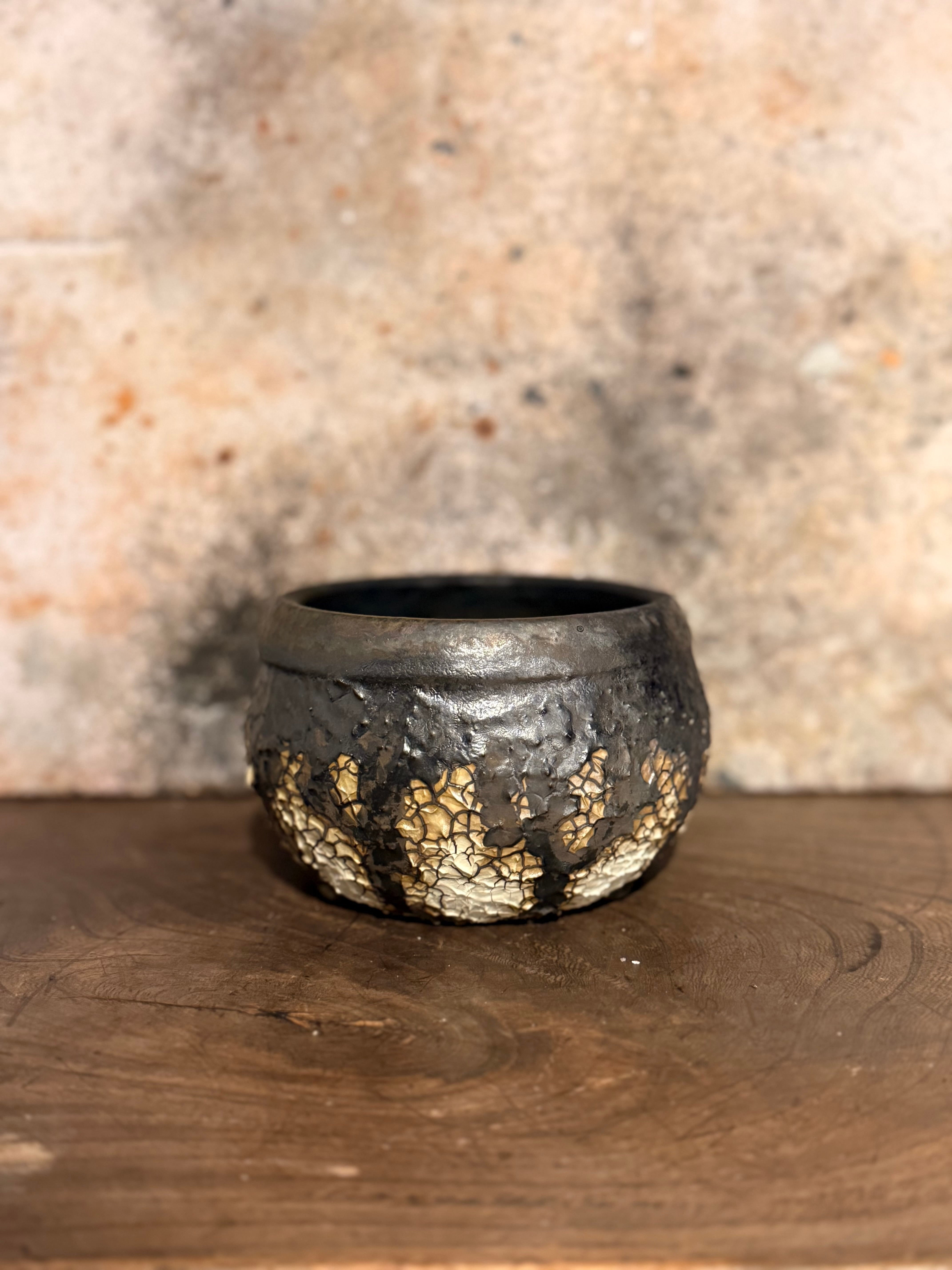 炭化させあえて汚れた感じにする事によりビンテージ感を感じさせてくれる一品。