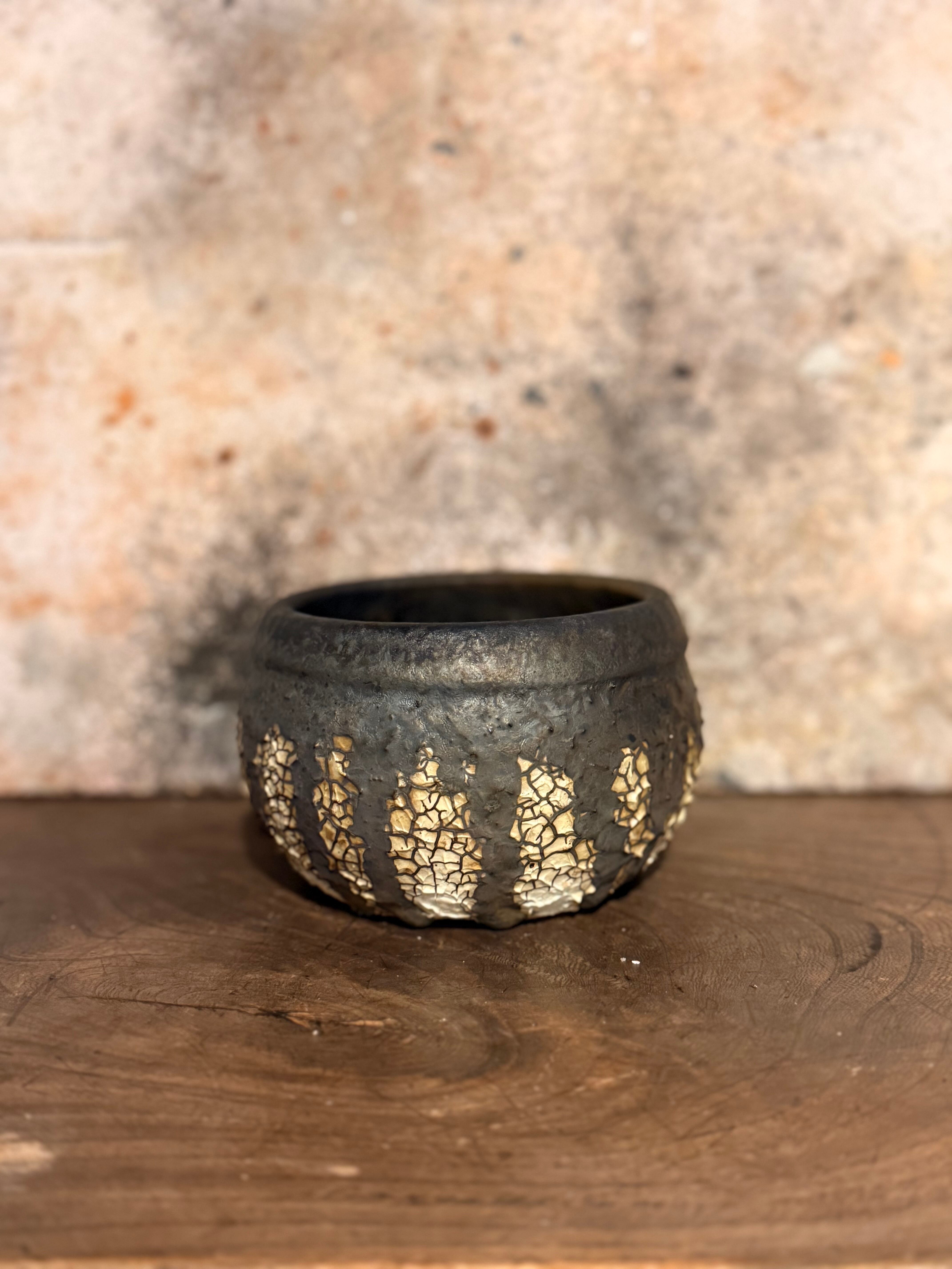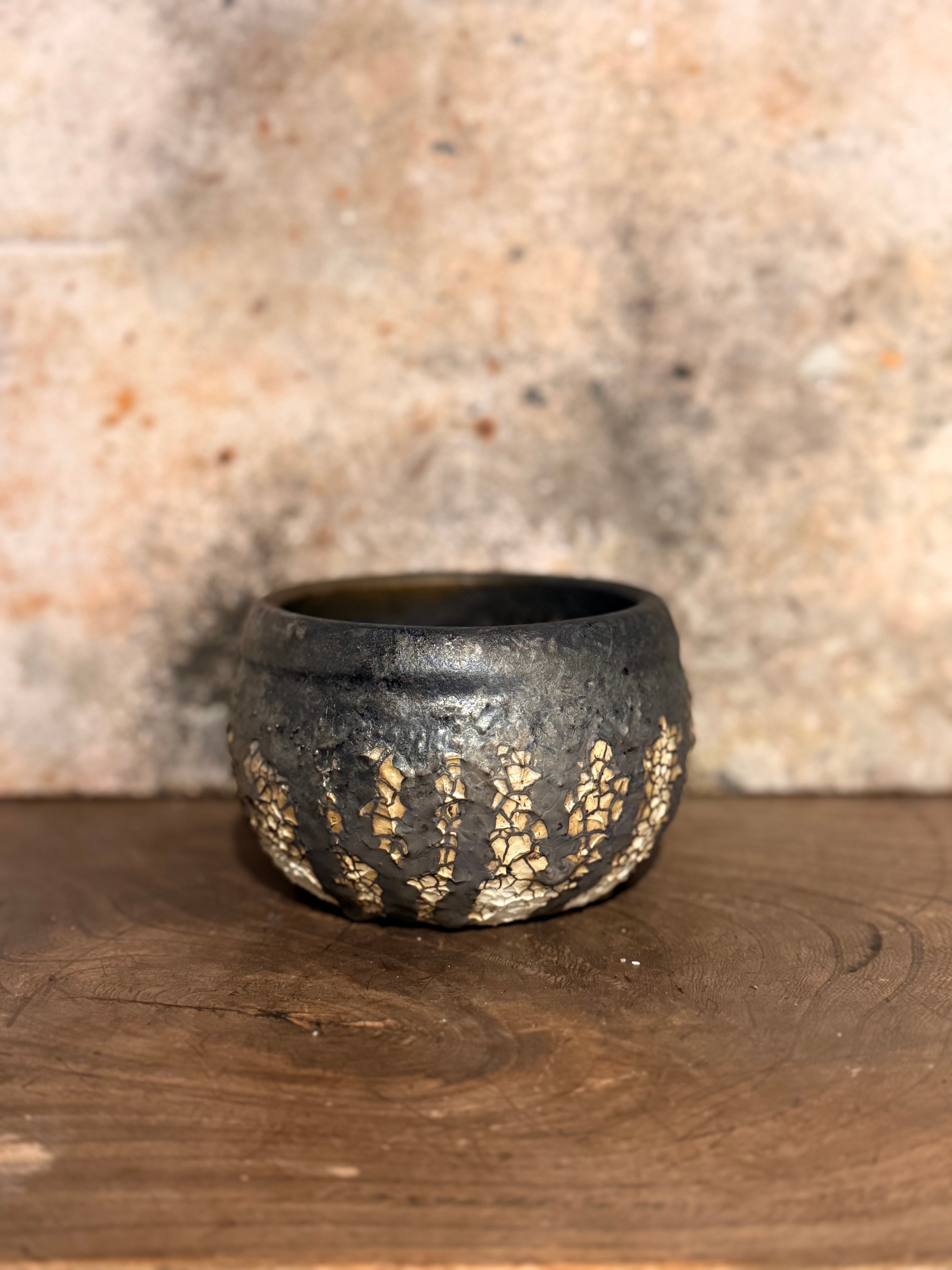 釉薬が下に垂れたり、色が変化しているこの表現は人口的なモノでは無く、人の手が届かない高温の炎の中で生まれ完成を迎えます。植物も光、風、水を元に成長していきますが、同じく人間が関与出来ないところが沢山あり、その共通点、面白さに焦点を当てる事により植物と陶芸は違う分野でも1つの作品として同じ意味を持てるのではないかと思い製作しました。