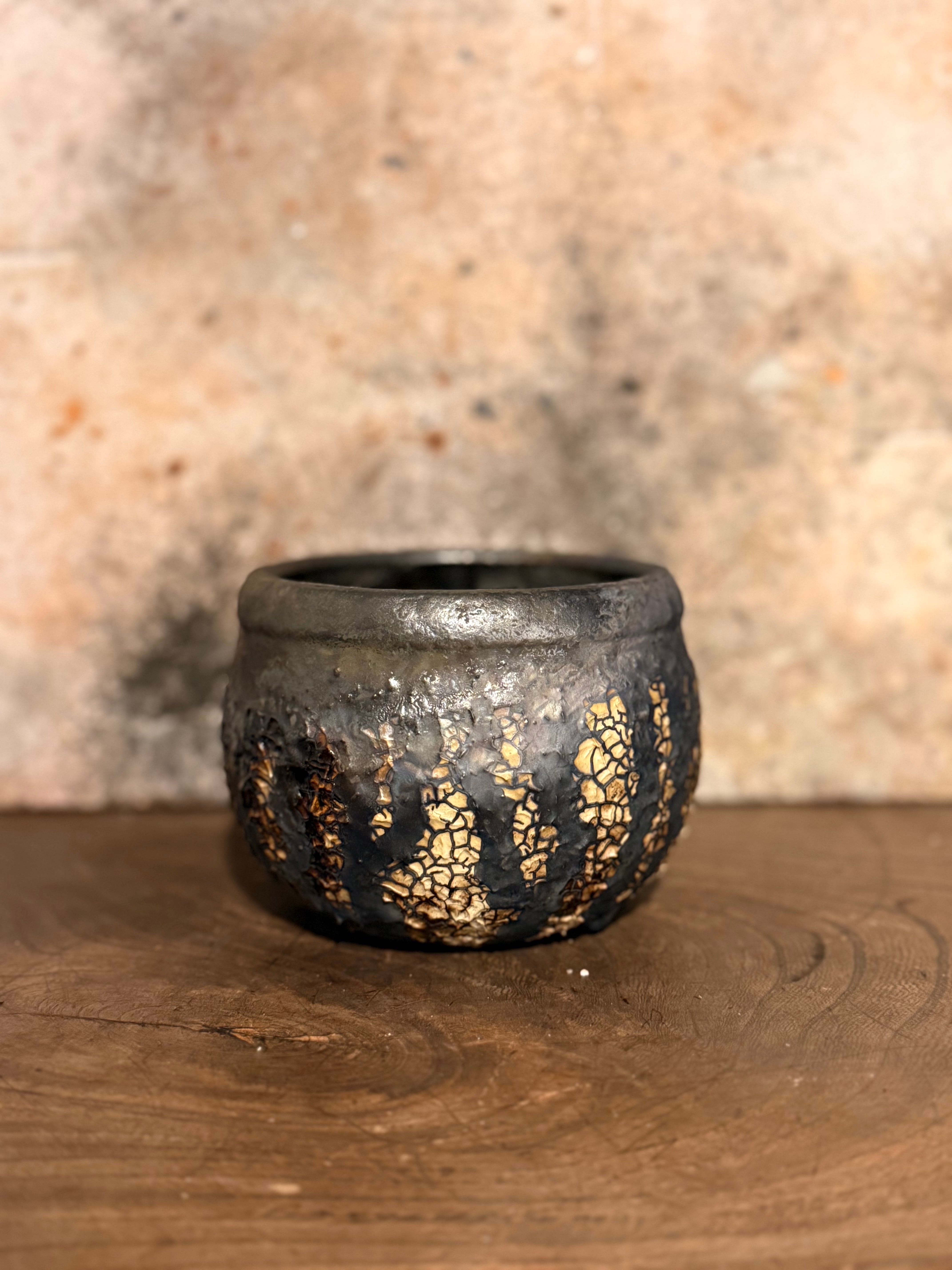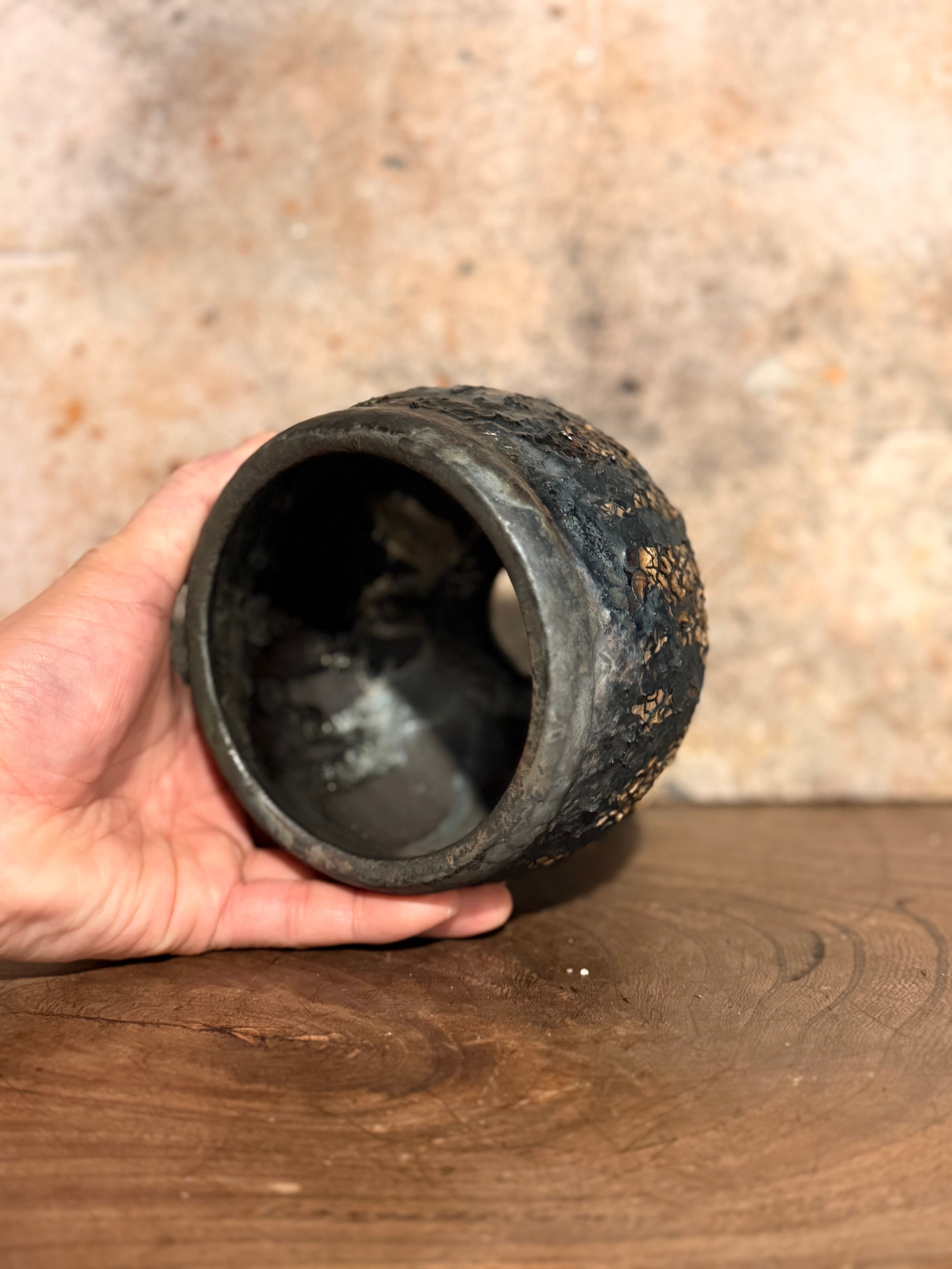 炭化させあえて汚れた感じにする事によりビンテージ感を感じさせてくれる一品。
