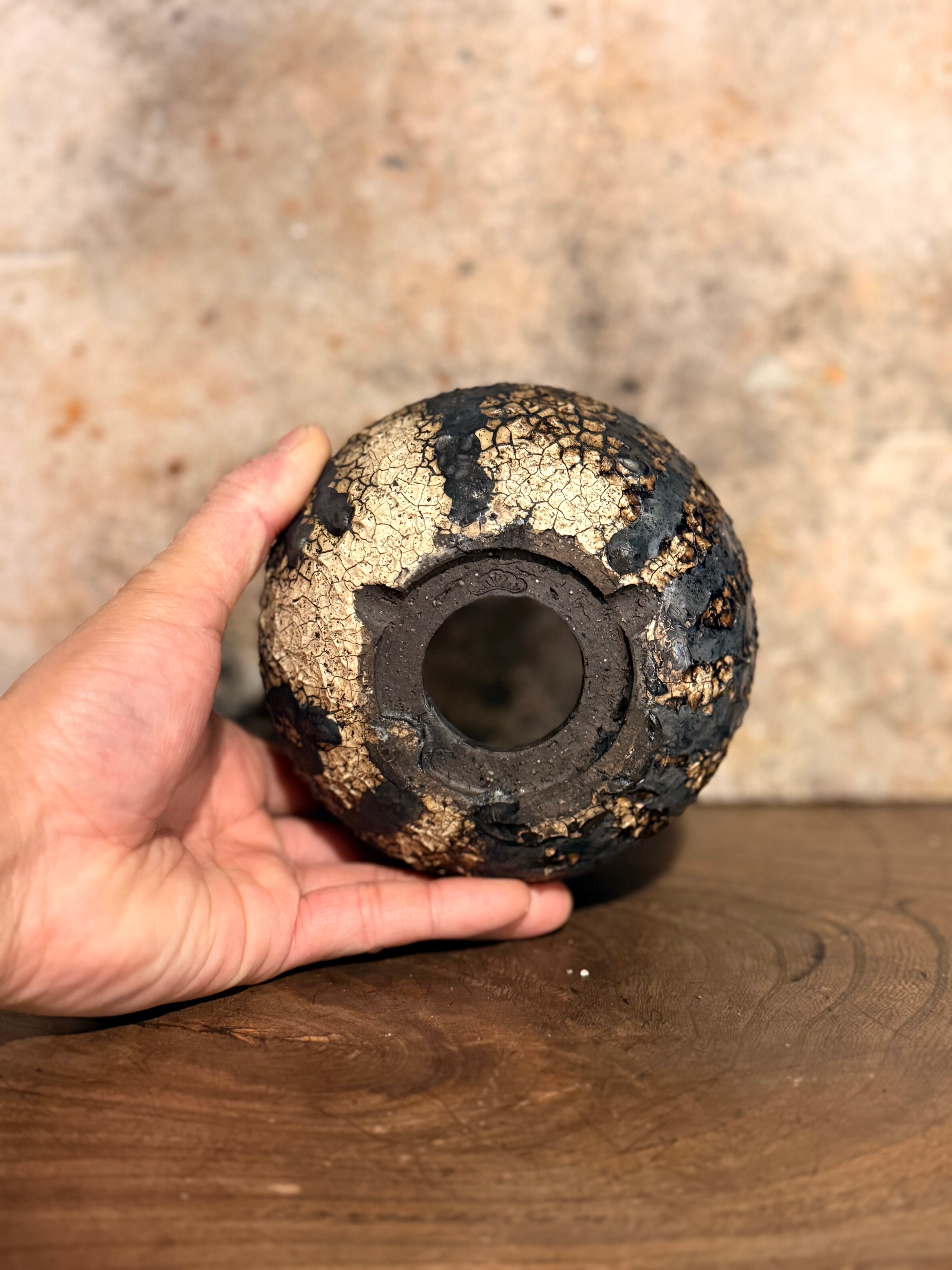 釉薬が下に垂れたり、色が変化しているこの表現は人口的なモノでは無く、人の手が届かない高温の炎の中で生まれ完成を迎えます。植物も光、風、水を元に成長していきますが、同じく人間が関与出来ないところが沢山あり、その共通点、面白さに焦点を当てる事により植物と陶芸は違う分野でも1つの作品として同じ意味を持てるのではないかと思い製作しました。