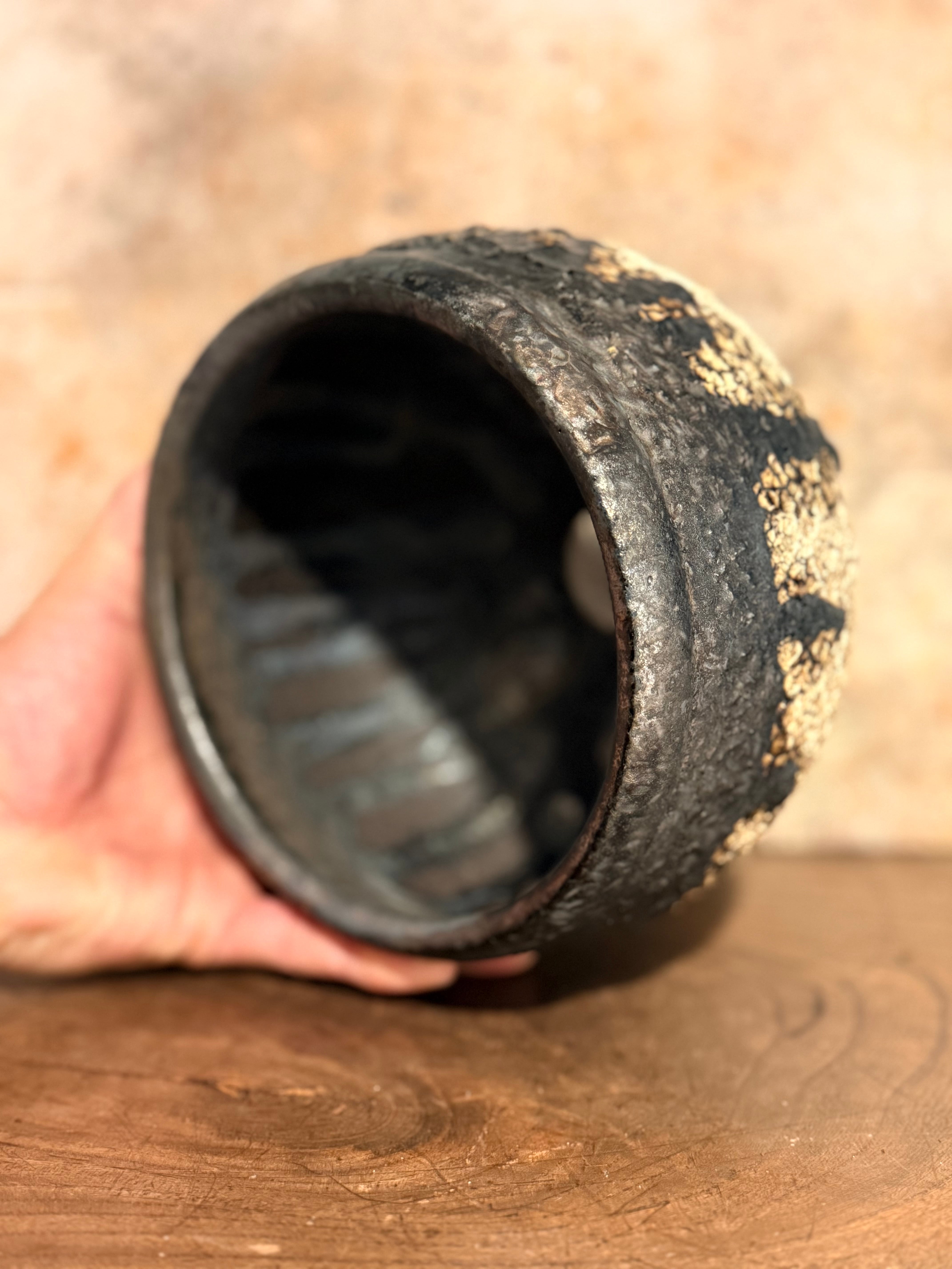炭化させあえて汚れた感じにする事によりビンテージ感を感じさせてくれる一品。