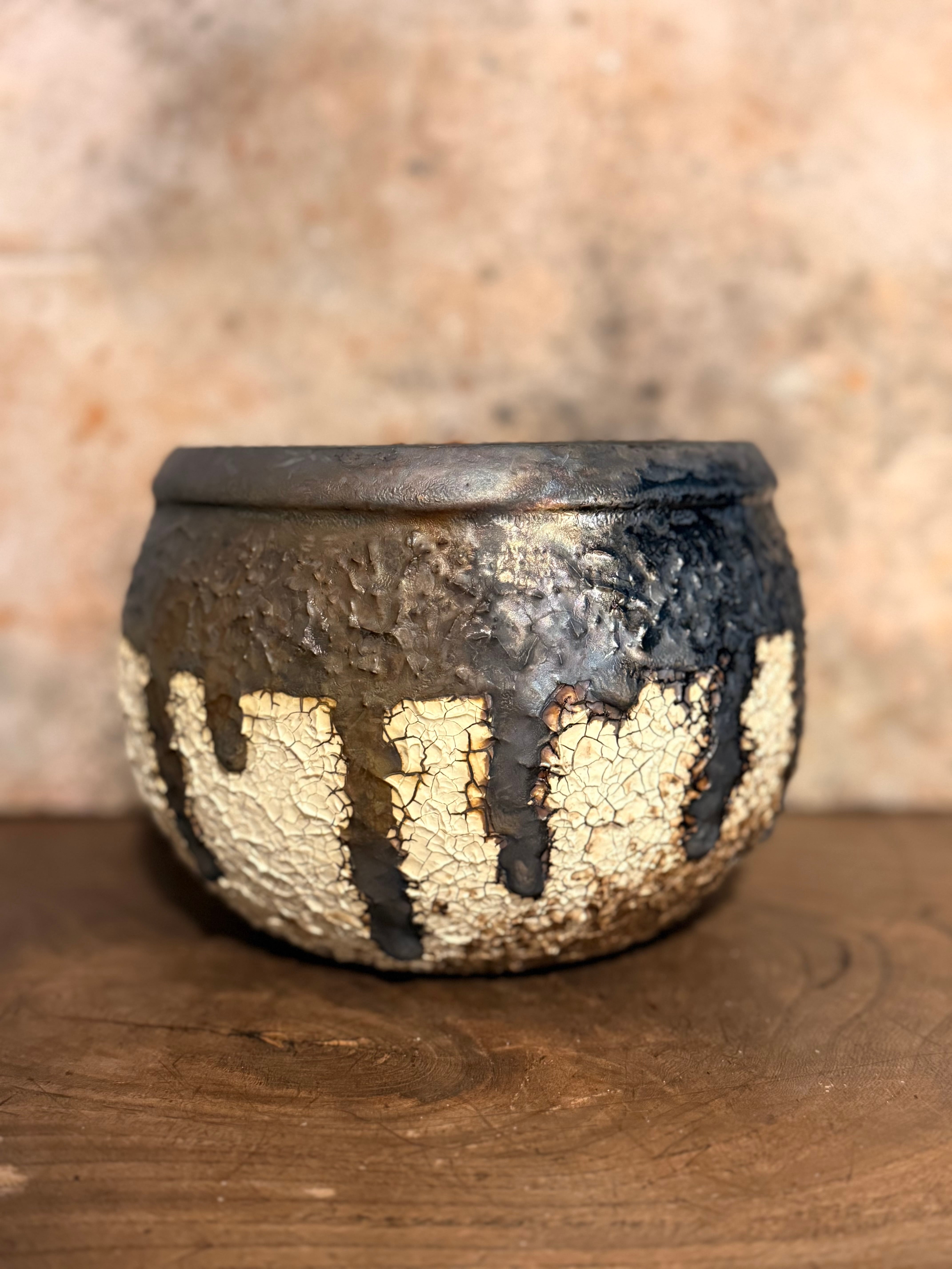 炭化させあえて汚れた感じにする事によりビンテージ感を感じさせてくれる一品。