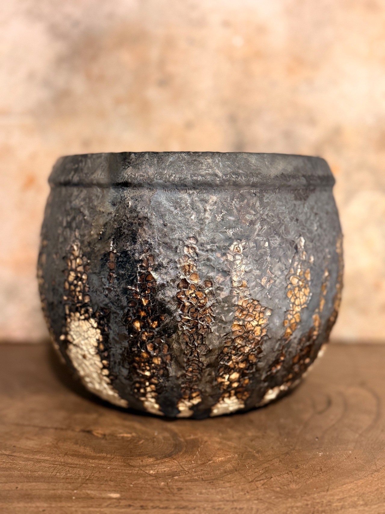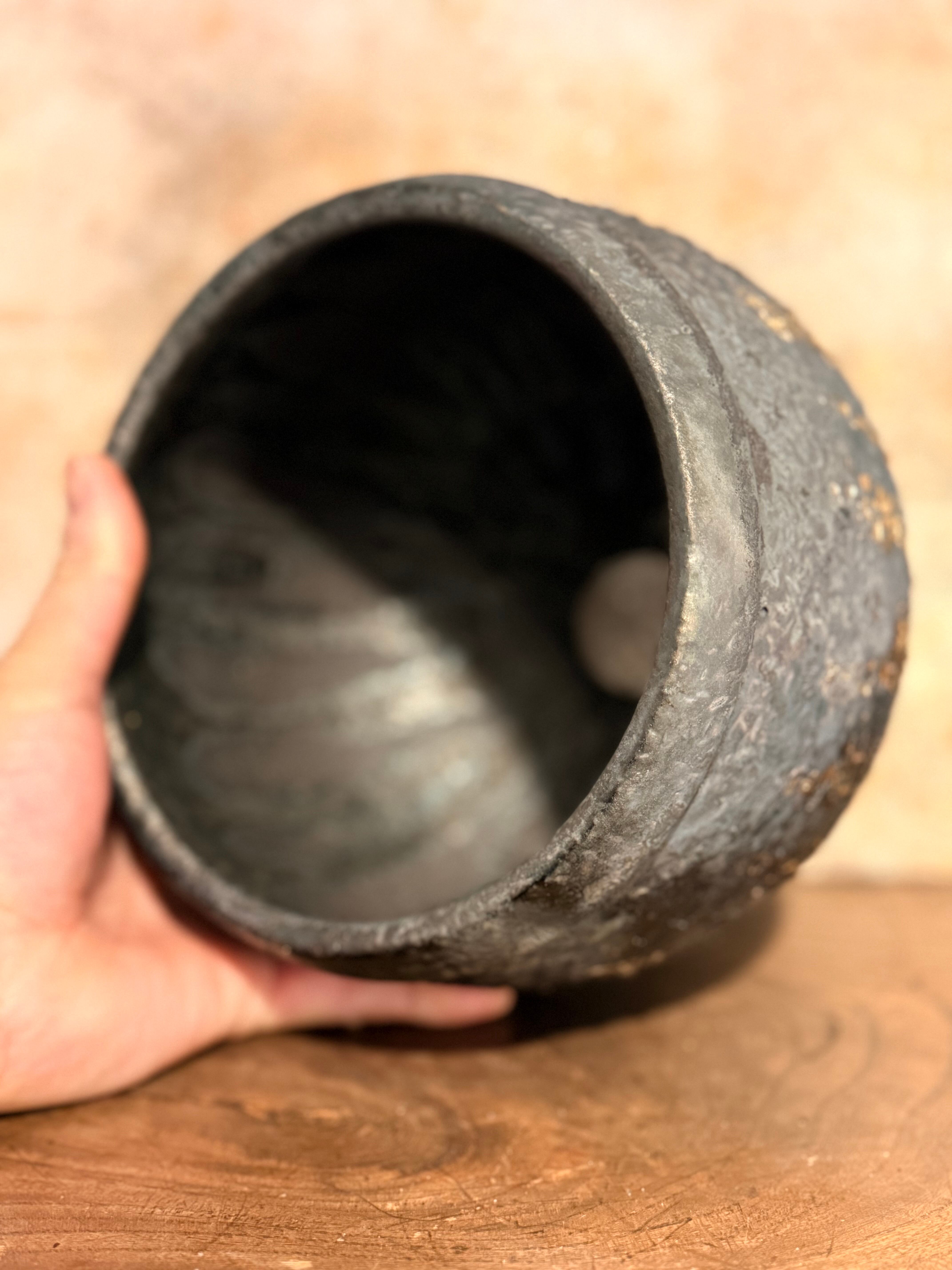 炭化させあえて汚れた感じにする事によりビンテージ感を感じさせてくれる一品。