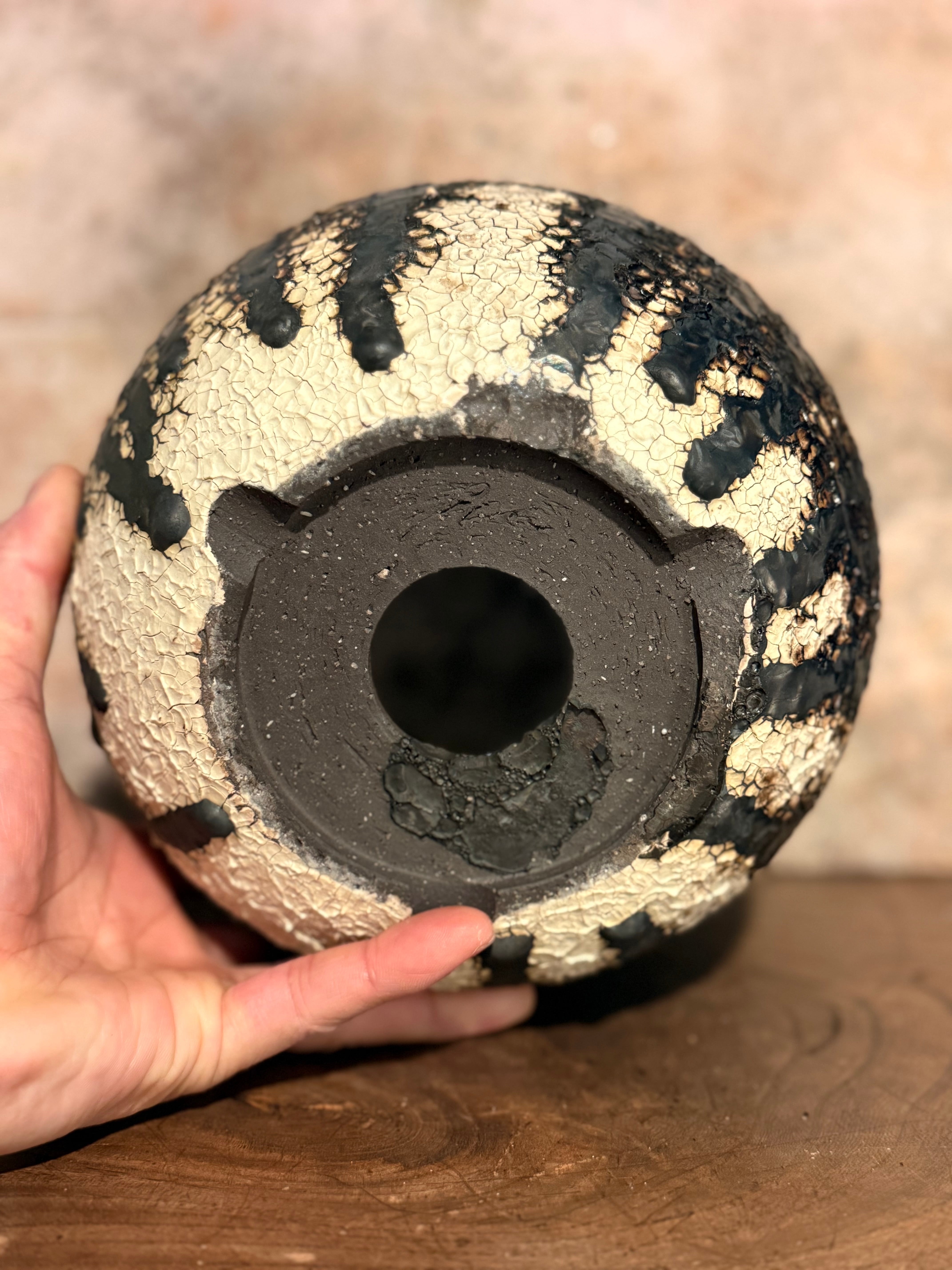 釉薬が下に垂れたり、色が変化しているこの表現は人口的なモノでは無く、人の手が届かない高温の炎の中で生まれ完成を迎えます。植物も光、風、水を元に成長していきますが、同じく人間が関与出来ないところが沢山あり、その共通点、面白さに焦点を当てる事により植物と陶芸は違う分野でも1つの作品として同じ意味を持てるのではないかと思い製作しました。