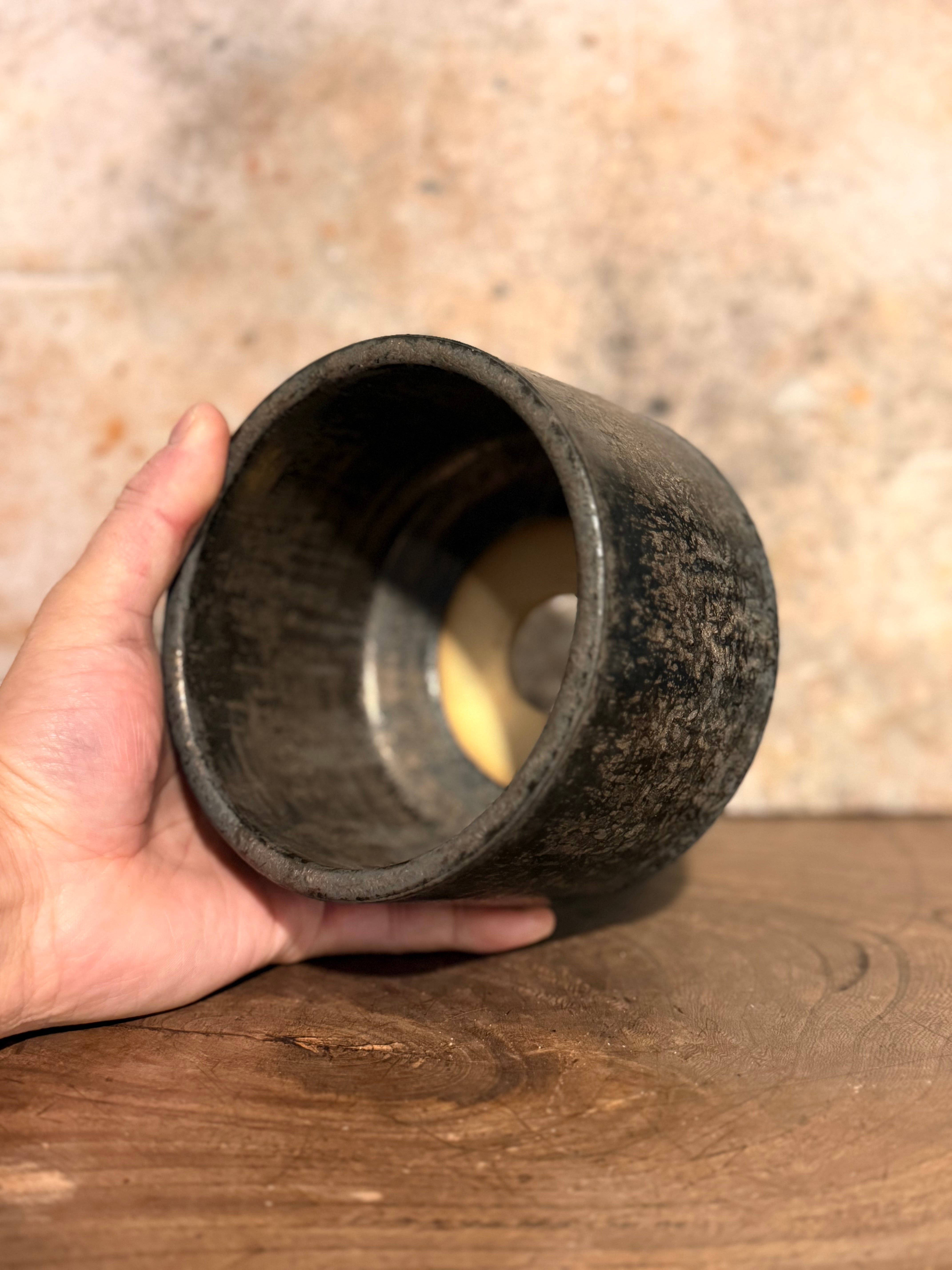 陶器製品のメリットである吸水性、速乾性を活かすのではなく、あえて内側まで釉薬をかけ、余分な水を滑り落とす事で、吸水保持せずに水を鉢の外に追い出す狙いがあります。また、植替え時に根が鉢に張り付く事がありますが、それを軽減する狙いがあります。