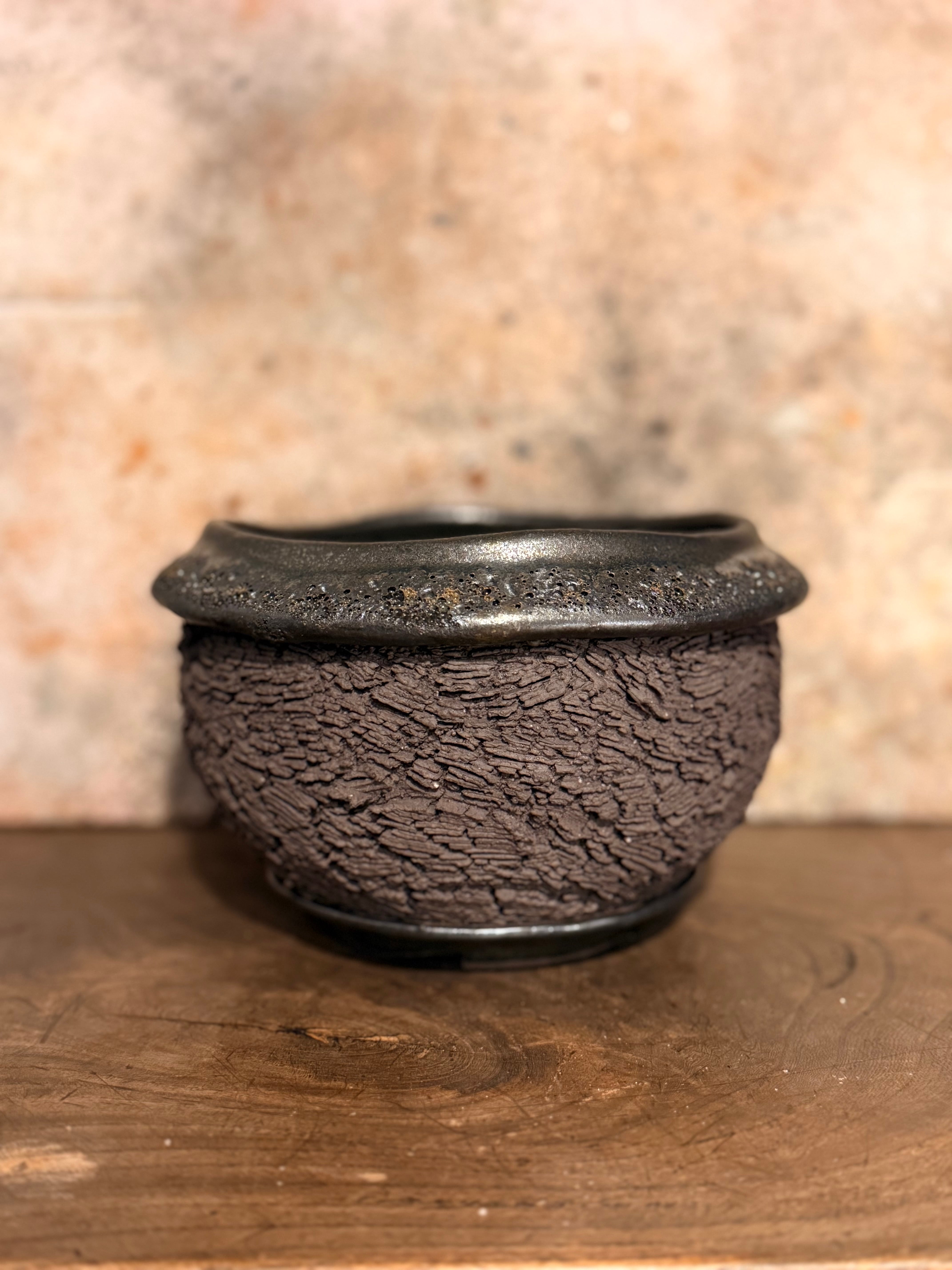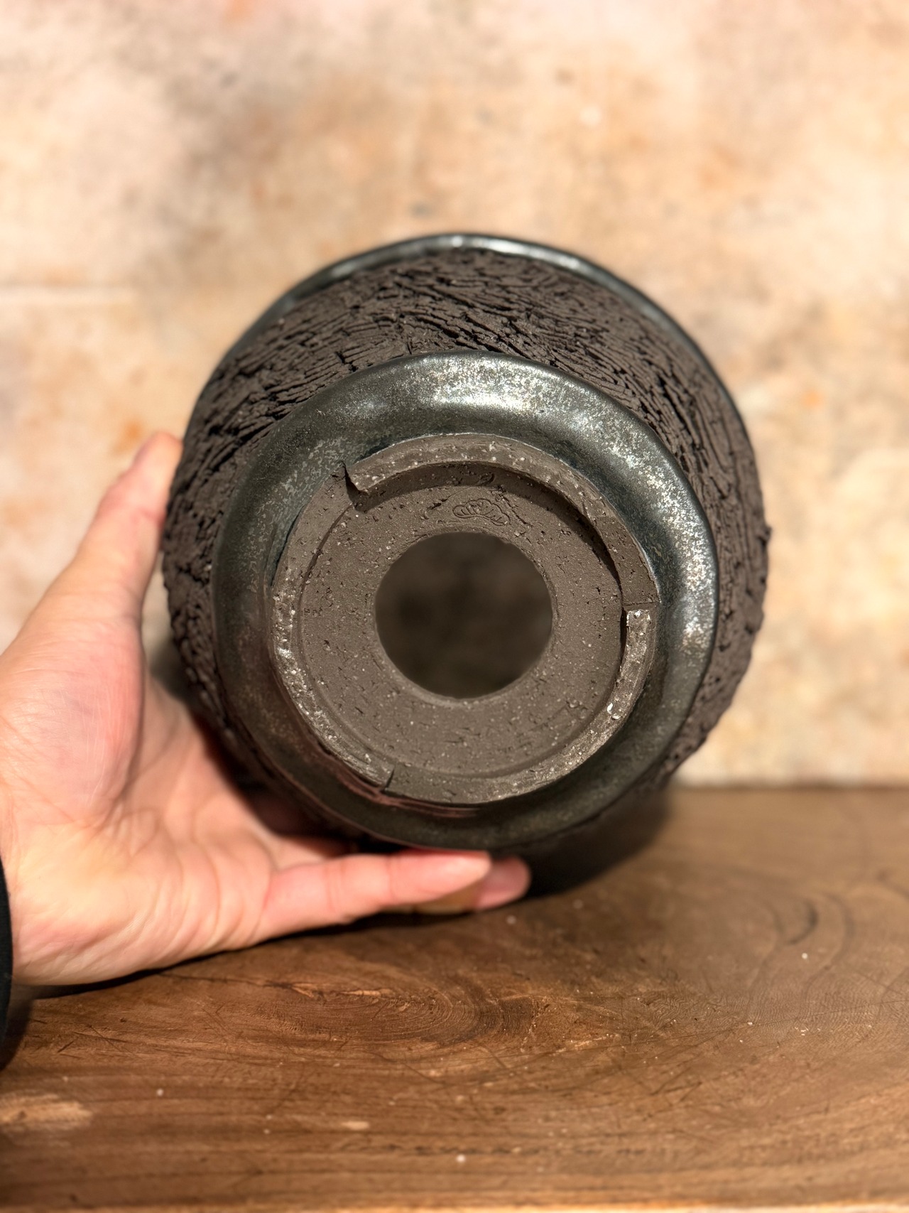 全く違うテクスチャーが1つになった鉢… 合わせる植物によって、より一層見応えのある”創造物”になるのようにと思いを込めております。