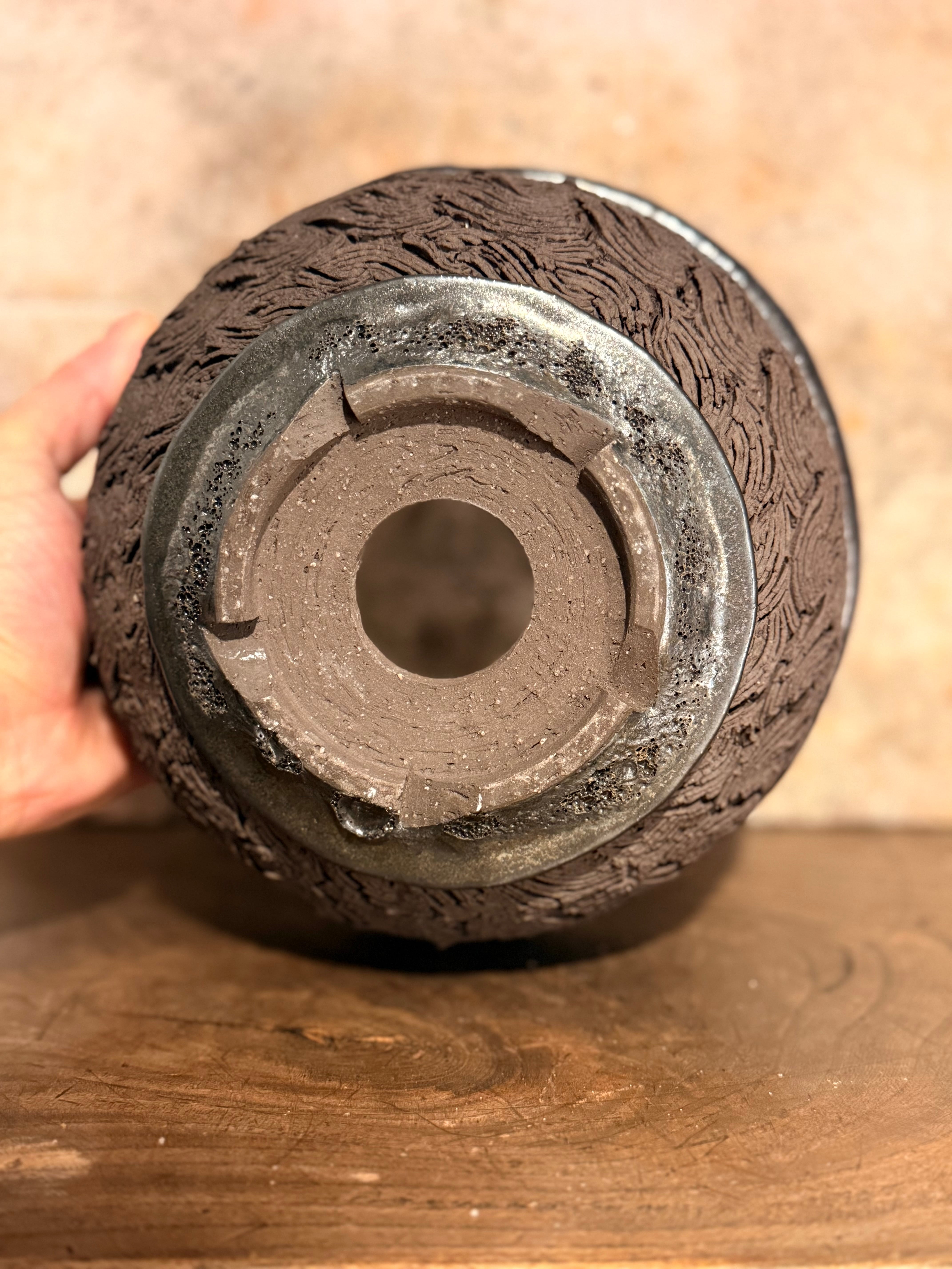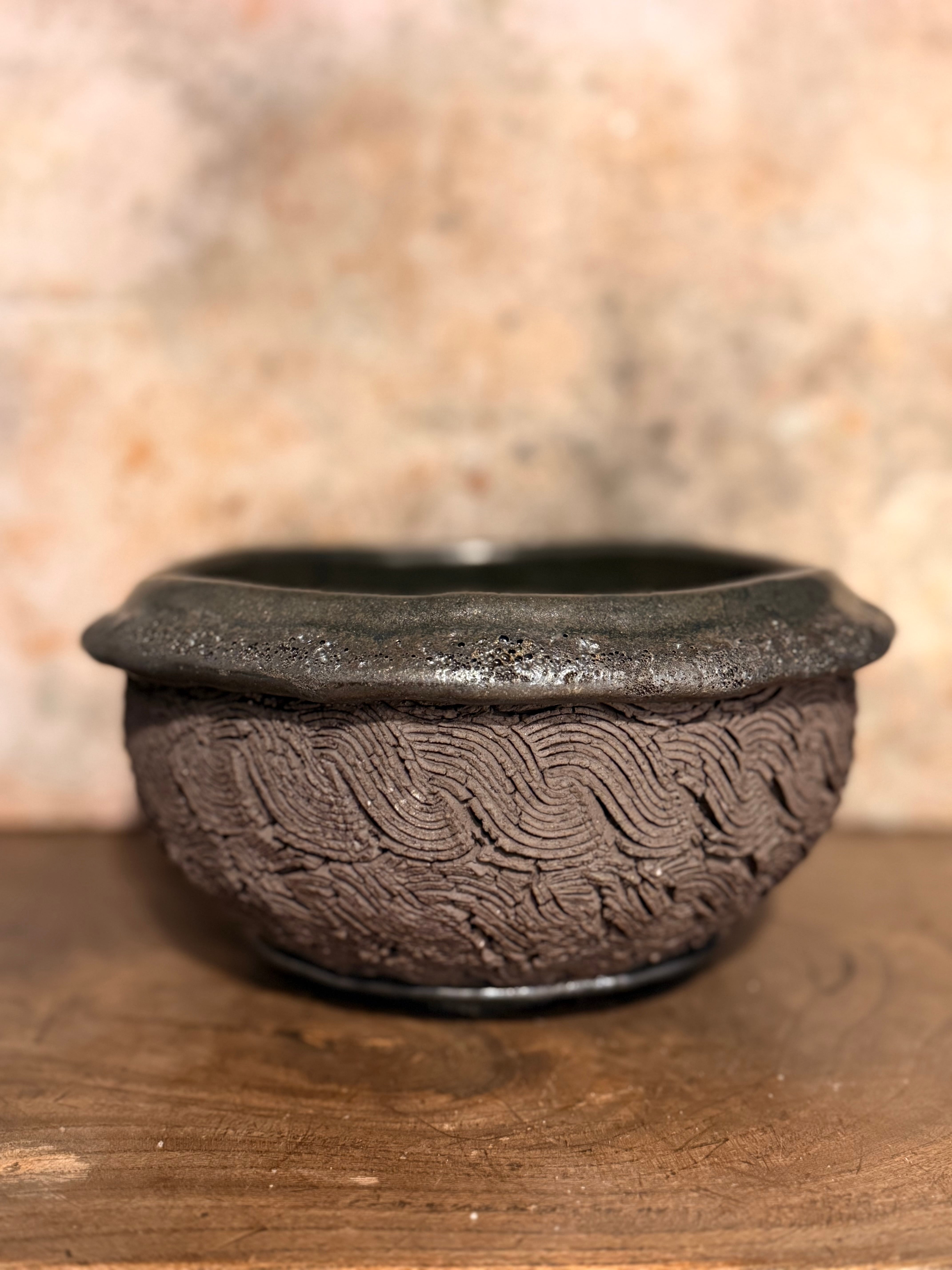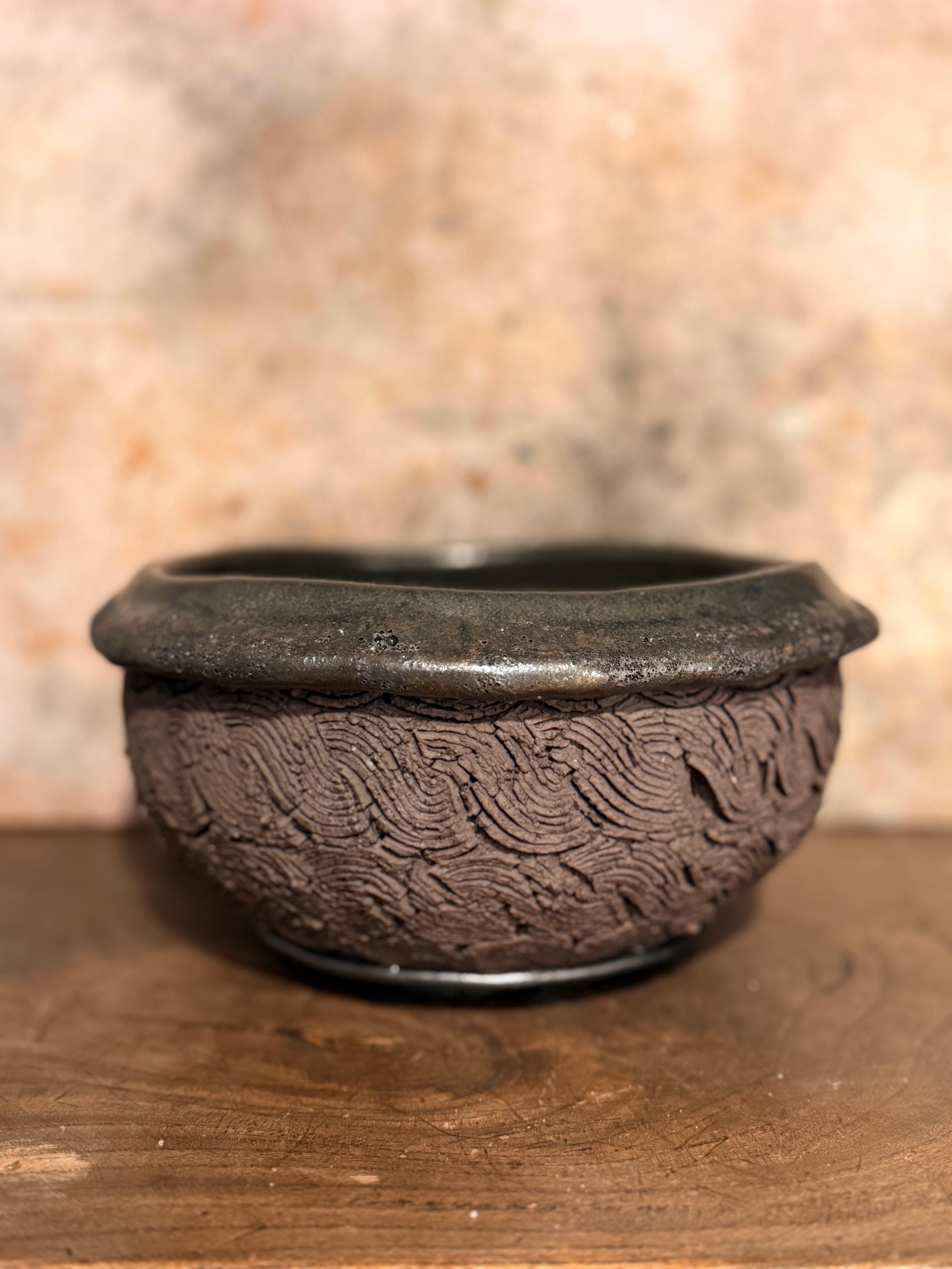 全く違うテクスチャーが1つになった鉢… 合わせる植物によって、より一層見応えのある”創造物”になるのようにと思いを込めております。