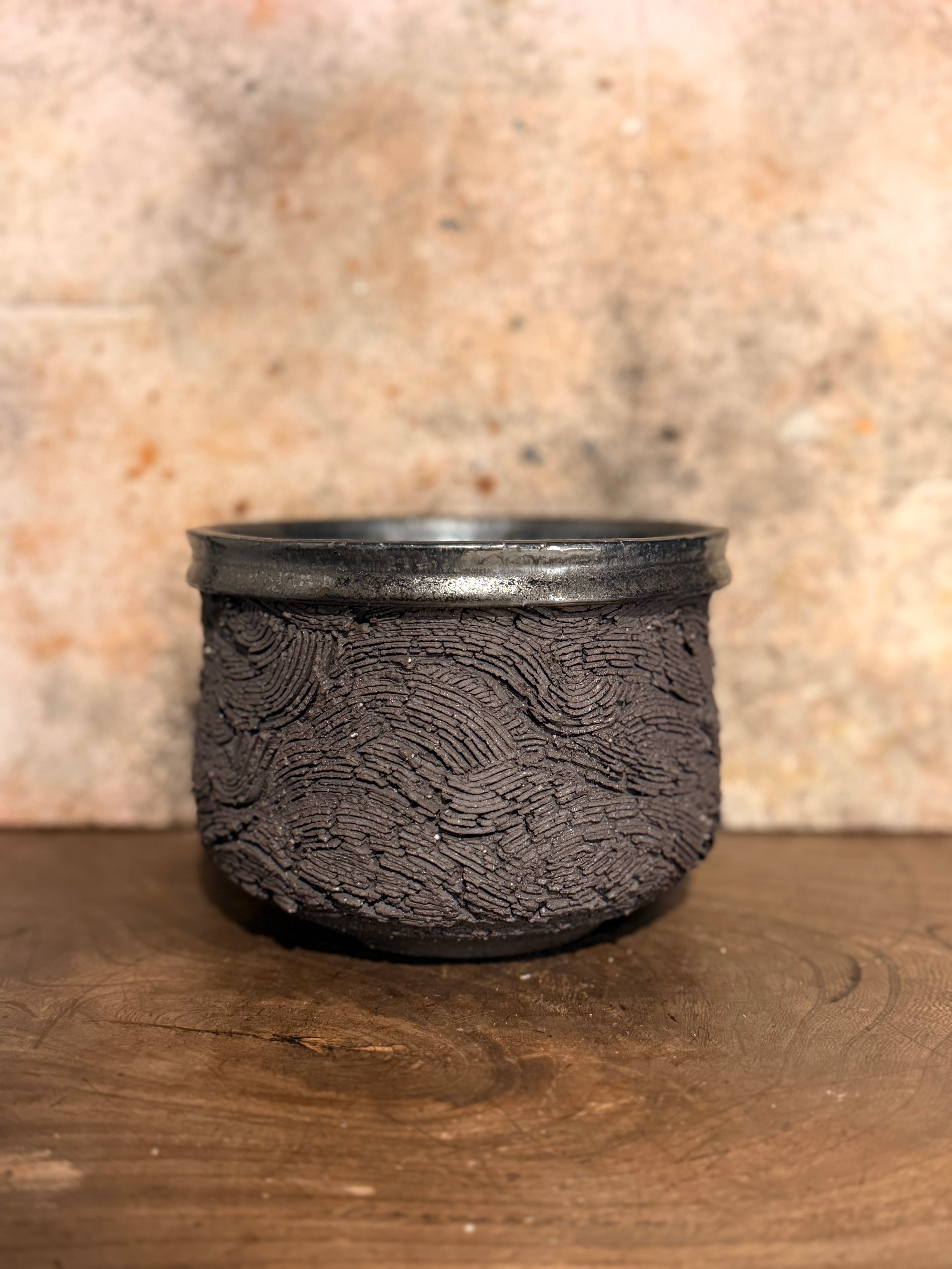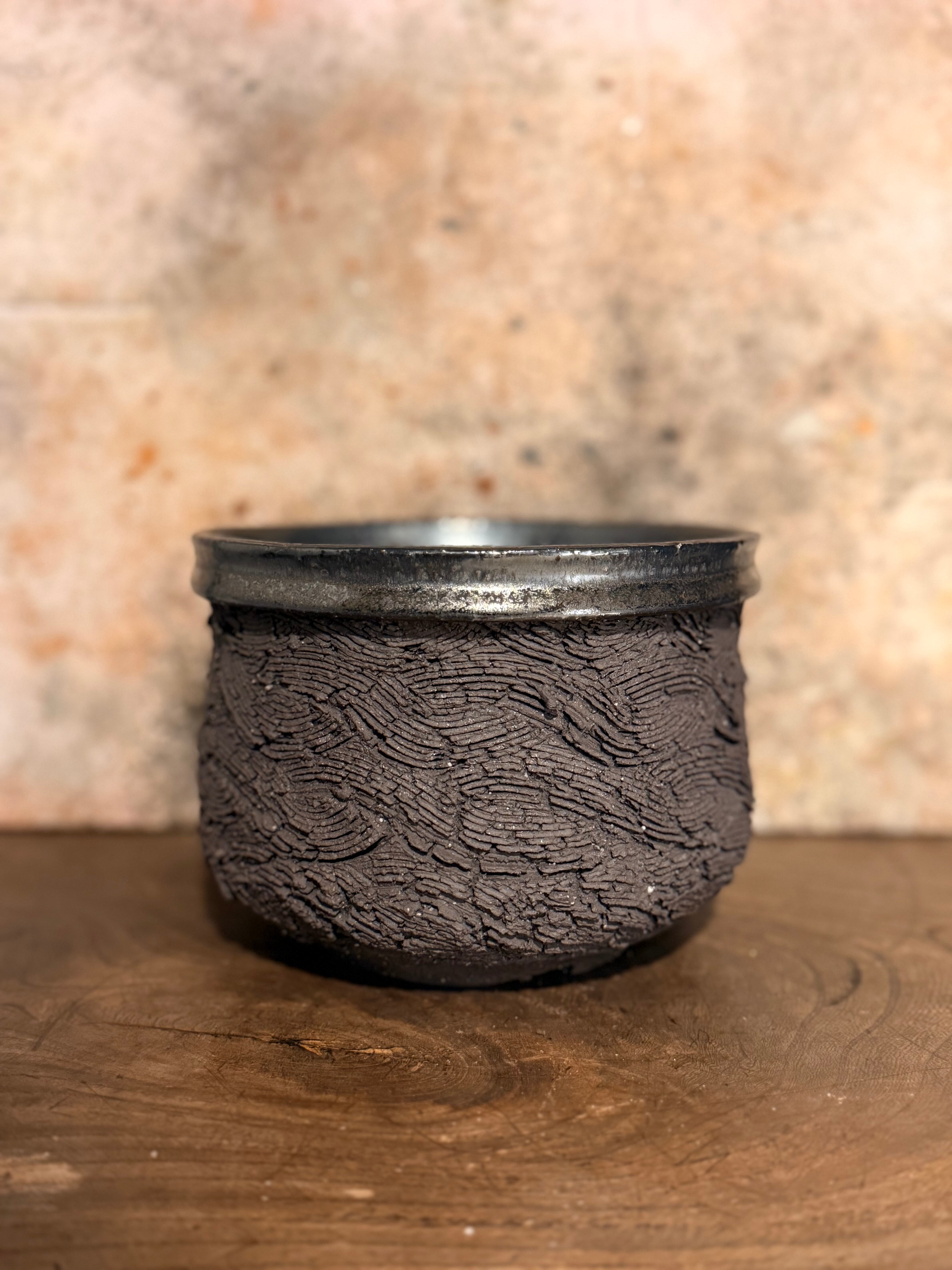 全く違うテクスチャーが1つになった鉢… 合わせる植物によって、より一層見応えのある”創造物”になるのようにと思いを込めております。