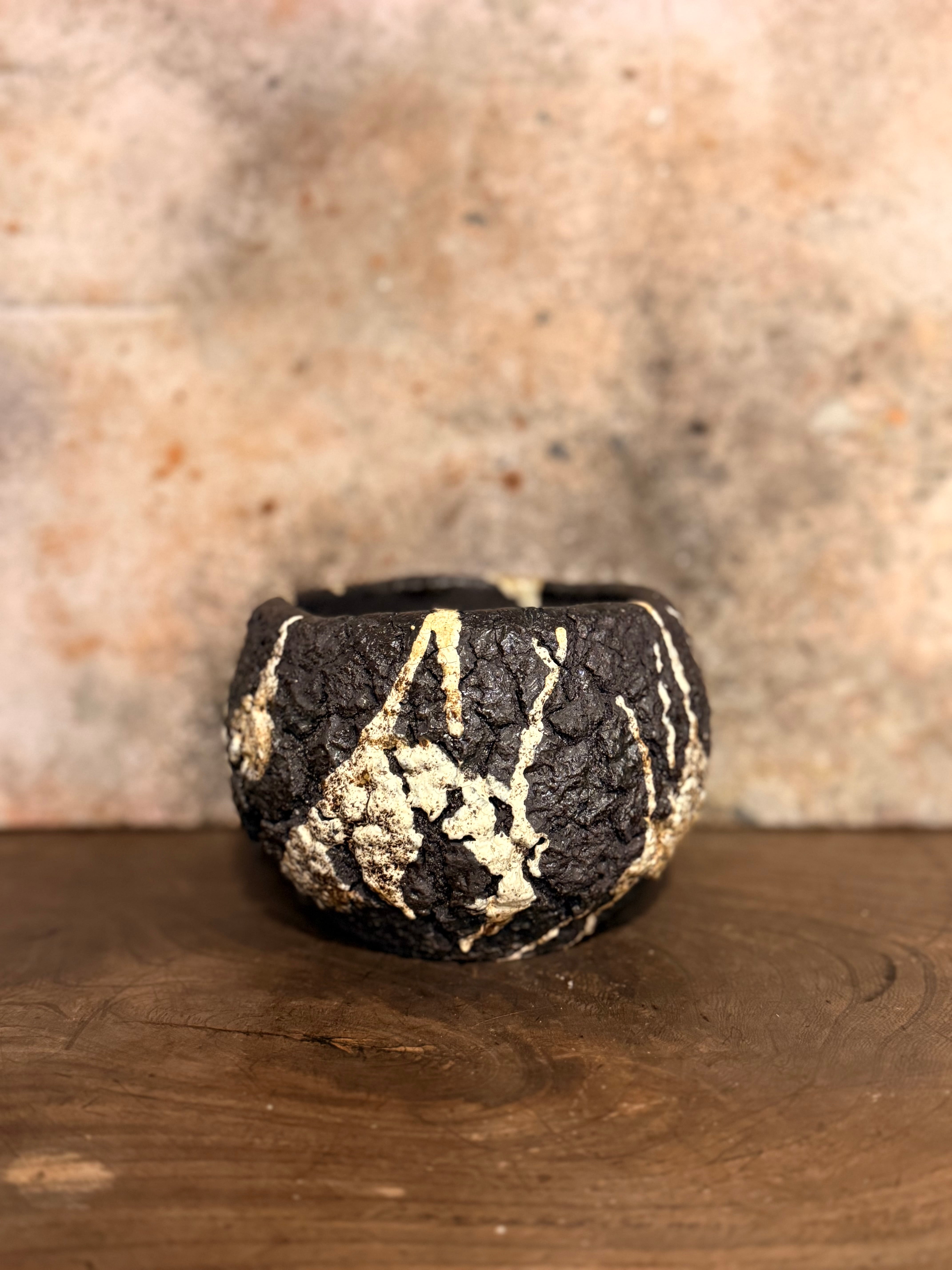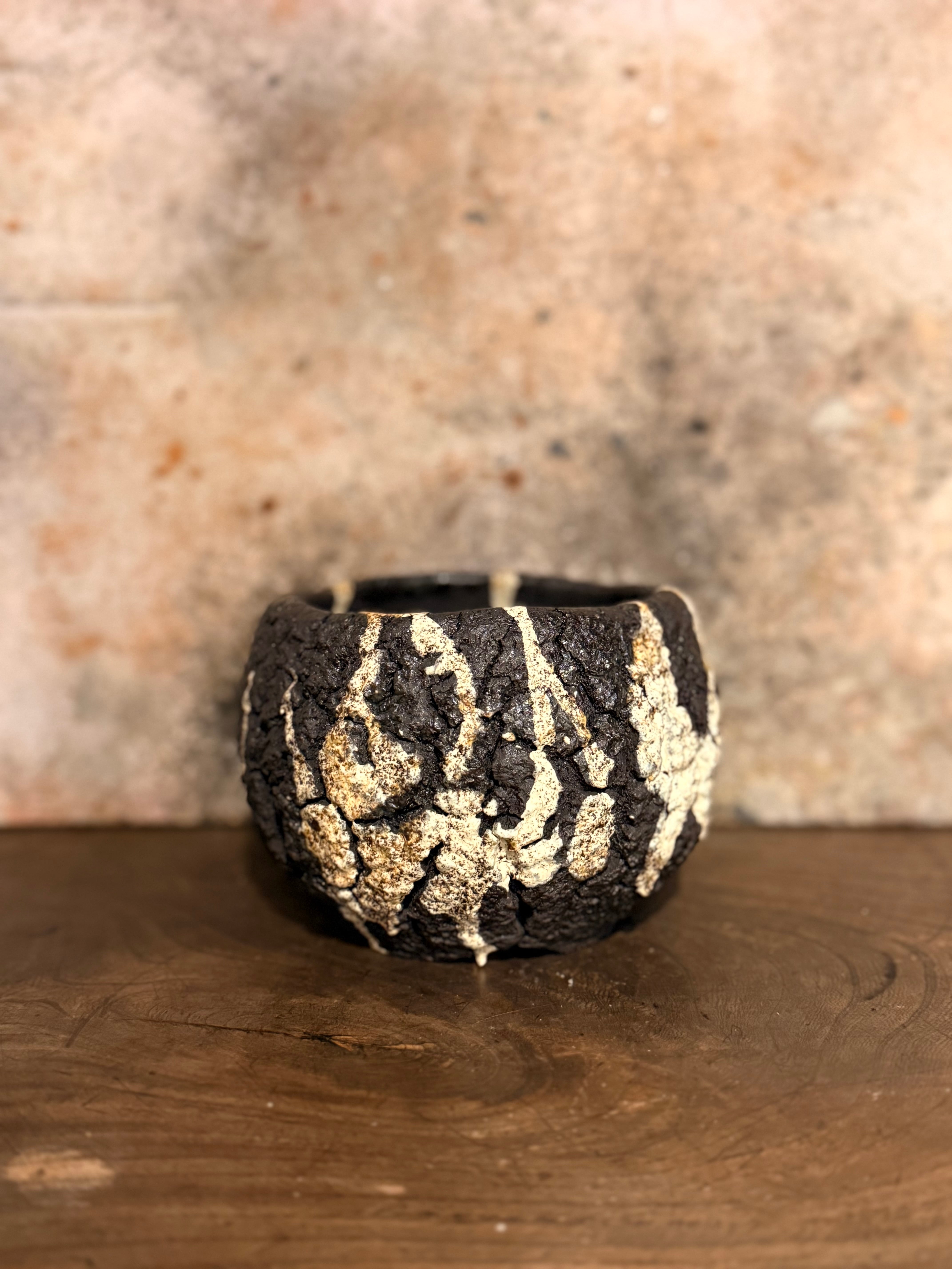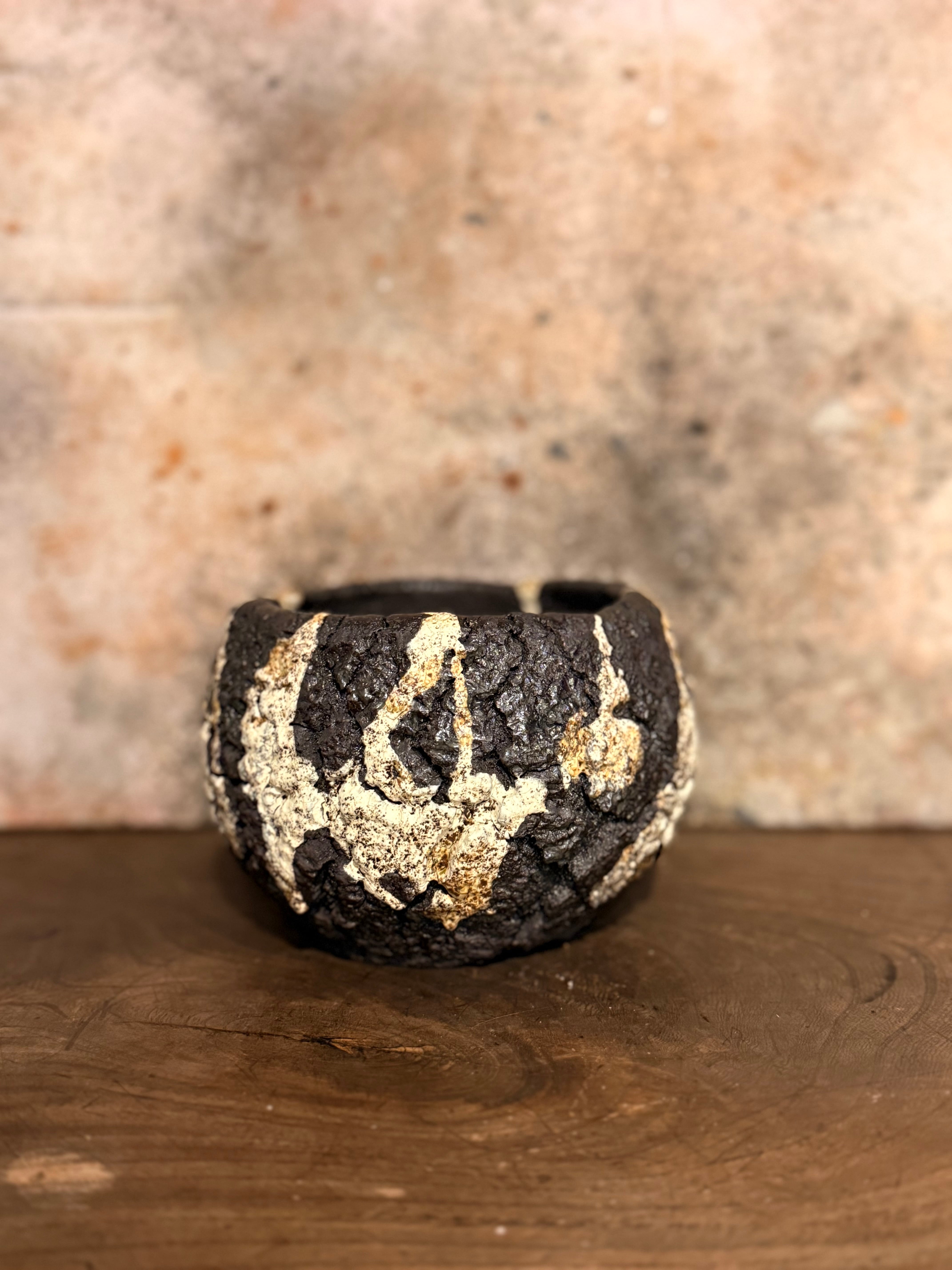 荒々しいテクスチャーですが丸みを帯びたフォルムに仕上げ、力強さと優しさを兼ね備えた印象を与えてくれる鉢です。