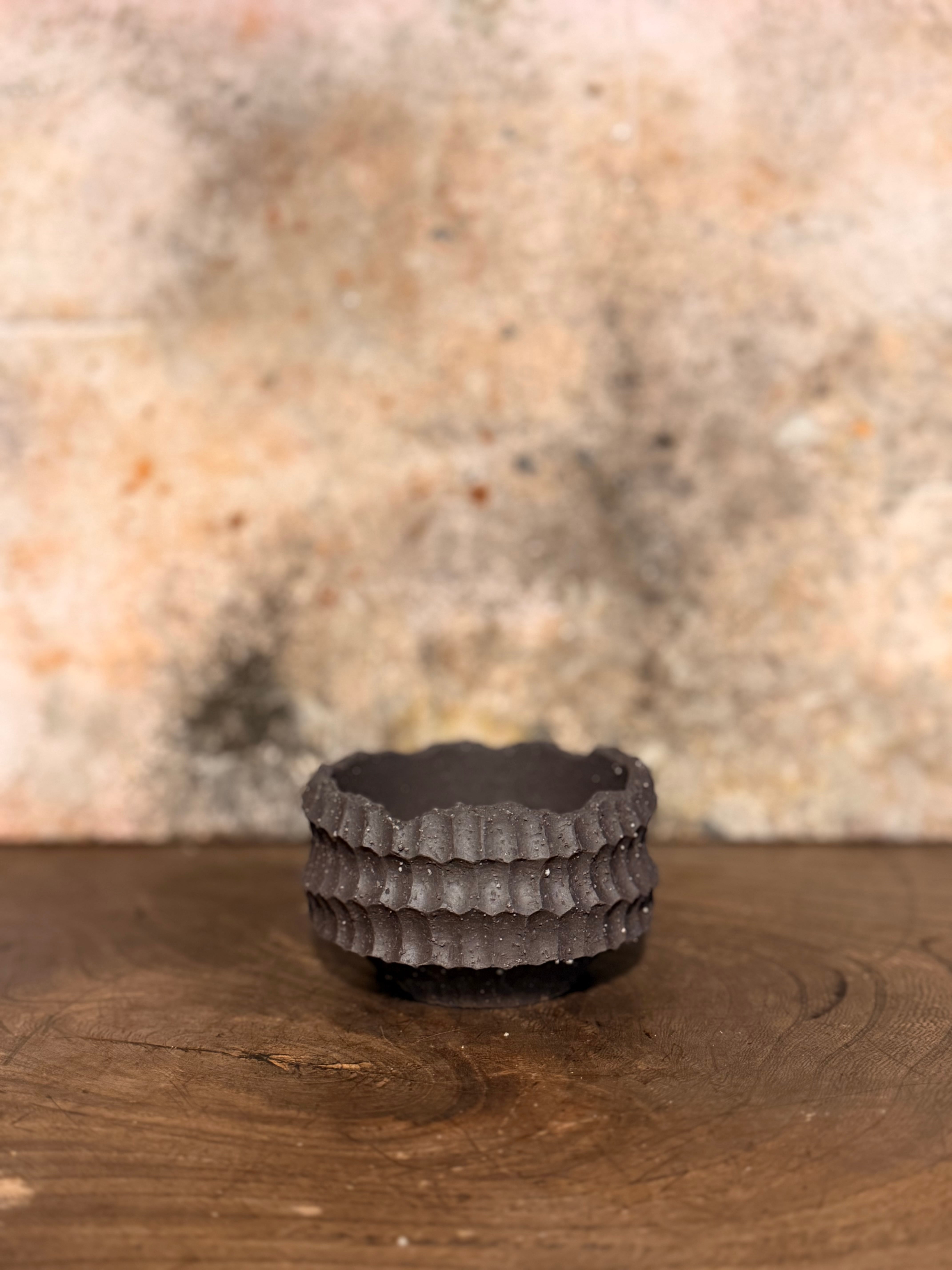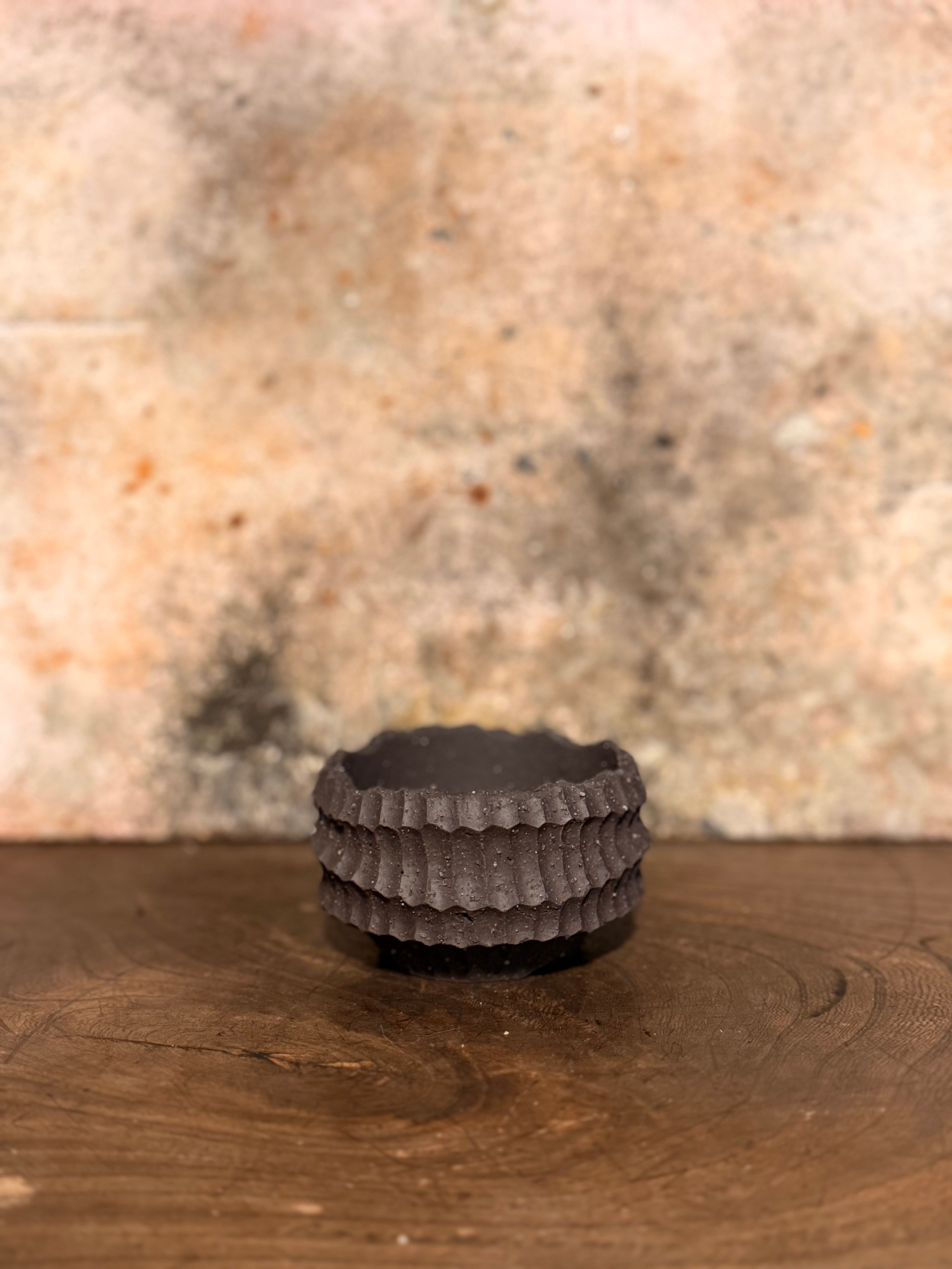 釉薬を一切使わず、更に荒目の土を使う事で、抜群の吸水性/速乾性をほこる一品。鉢の凹凸が陰影を生み景色としても楽しめる仕上がりになっております。