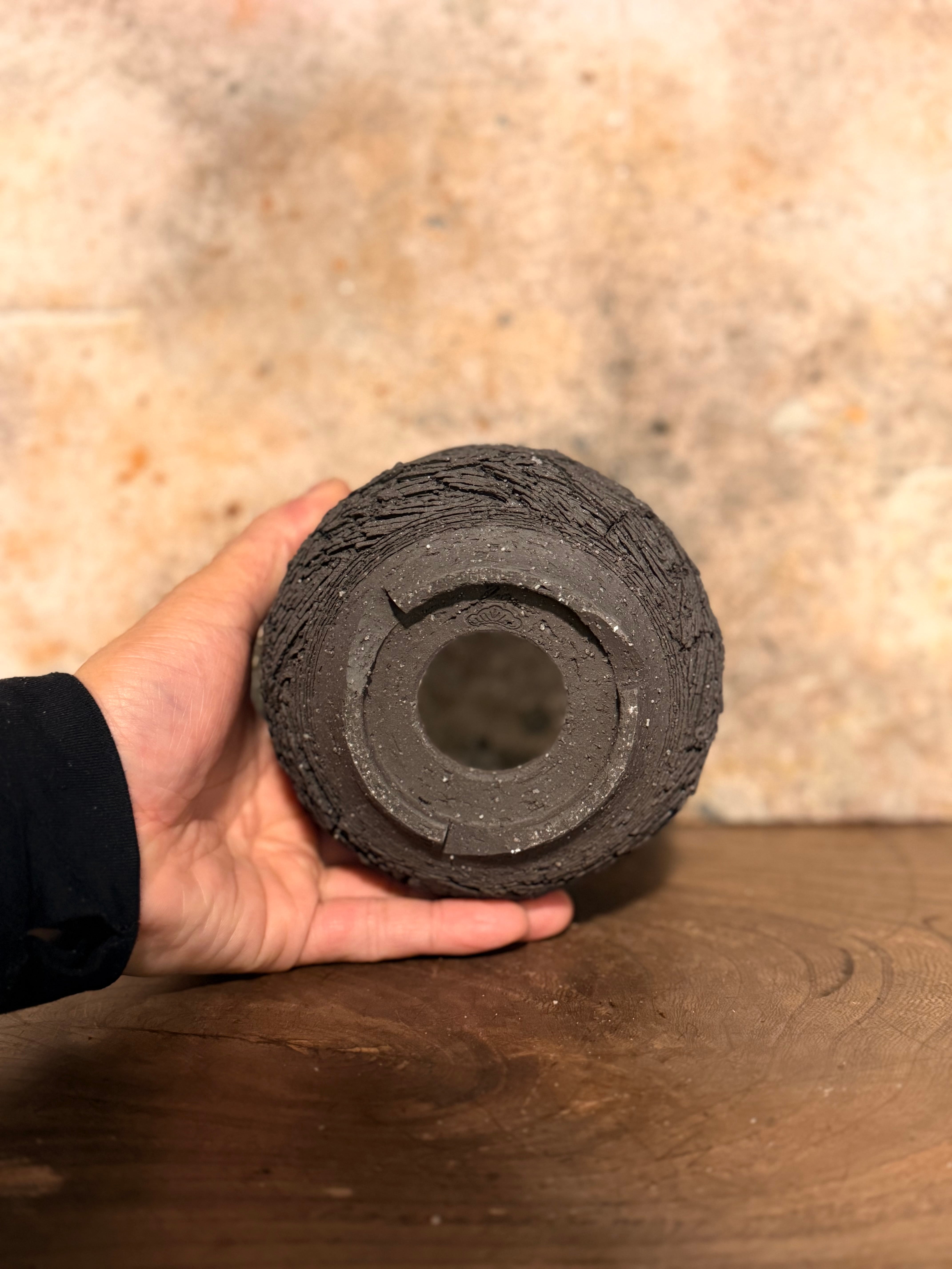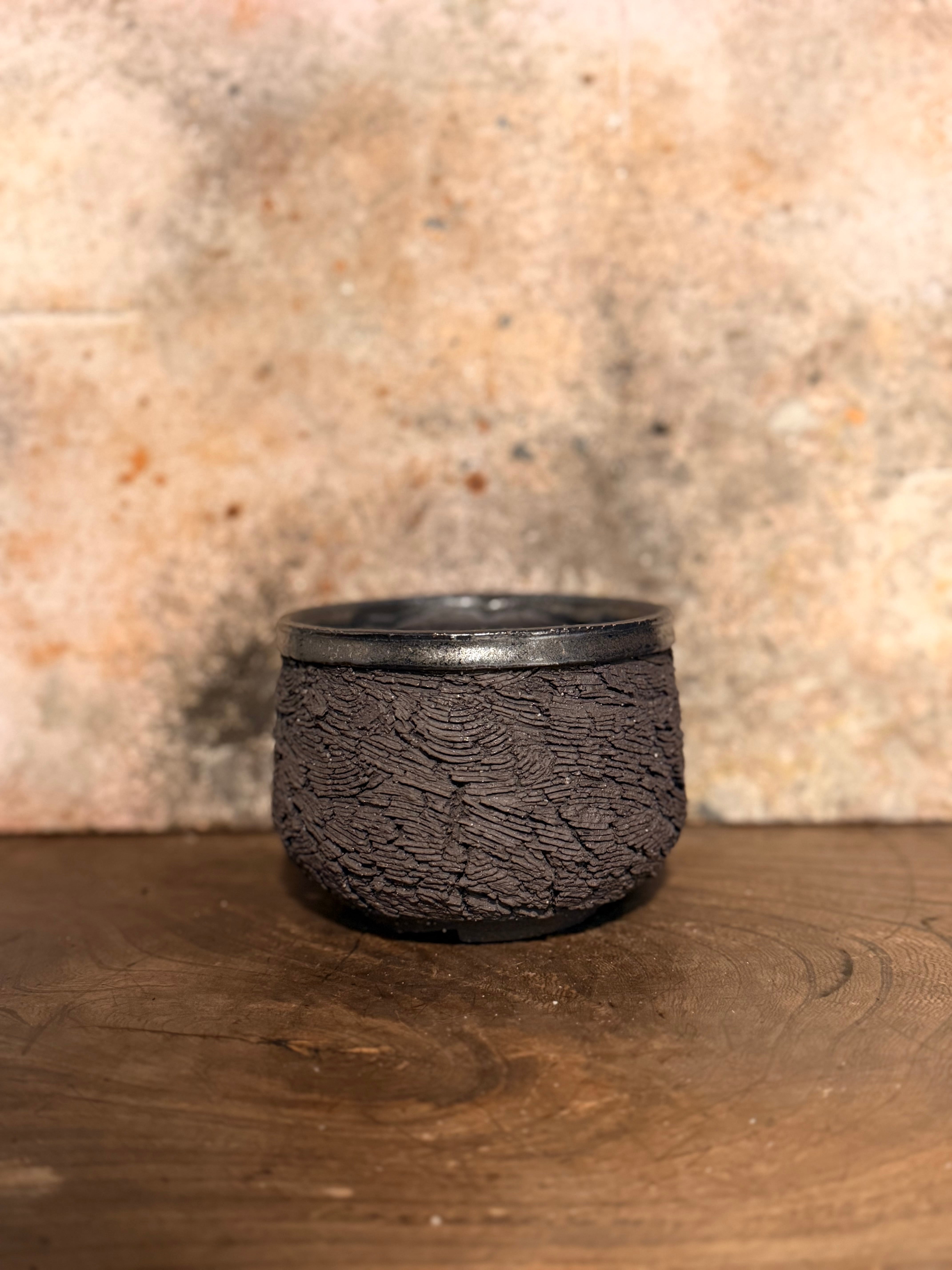 全く違うテクスチャーが1つになった鉢… 合わせる植物によって、より一層見応えのある”創造物”になるのようにと思いを込めております。