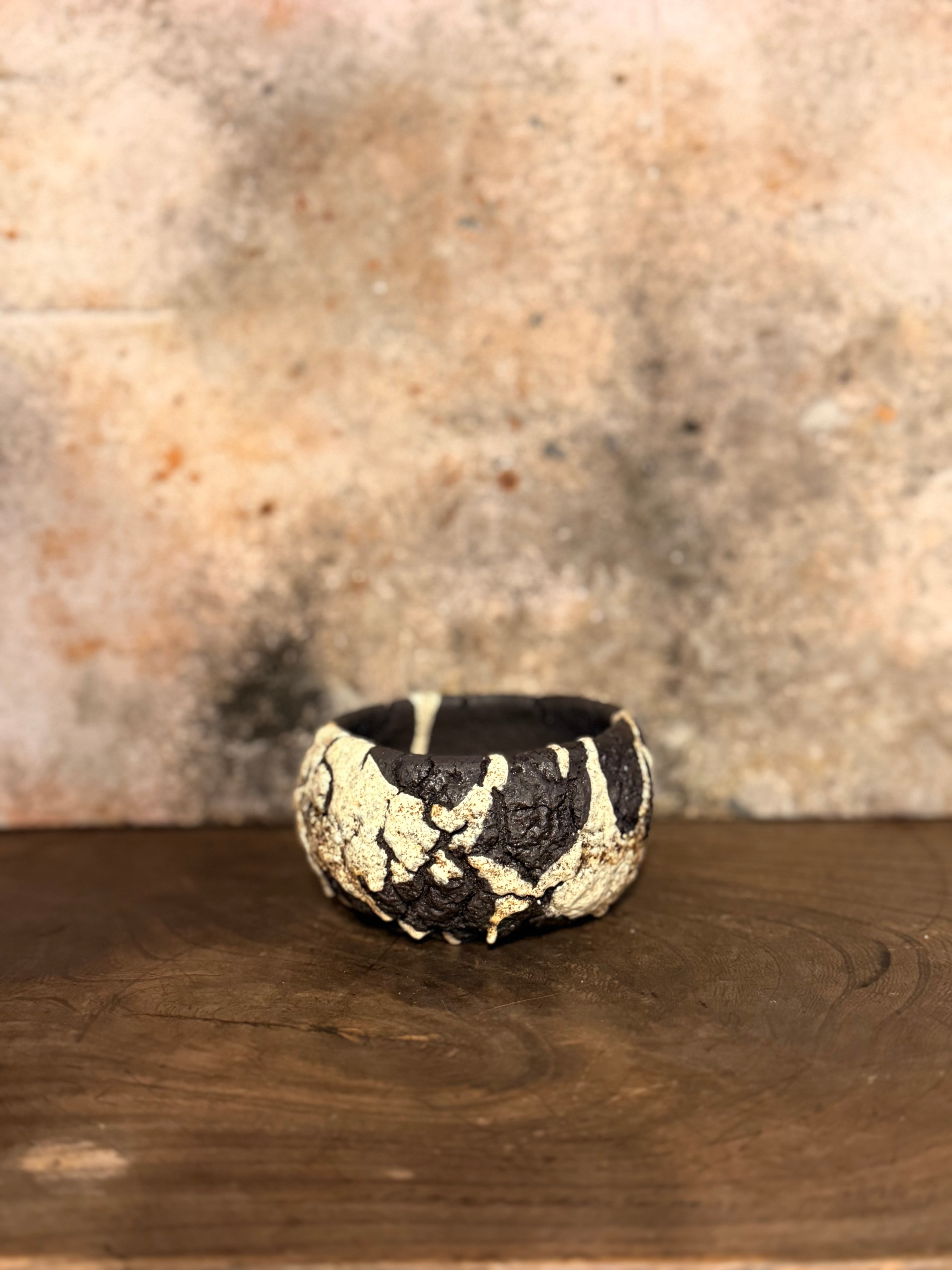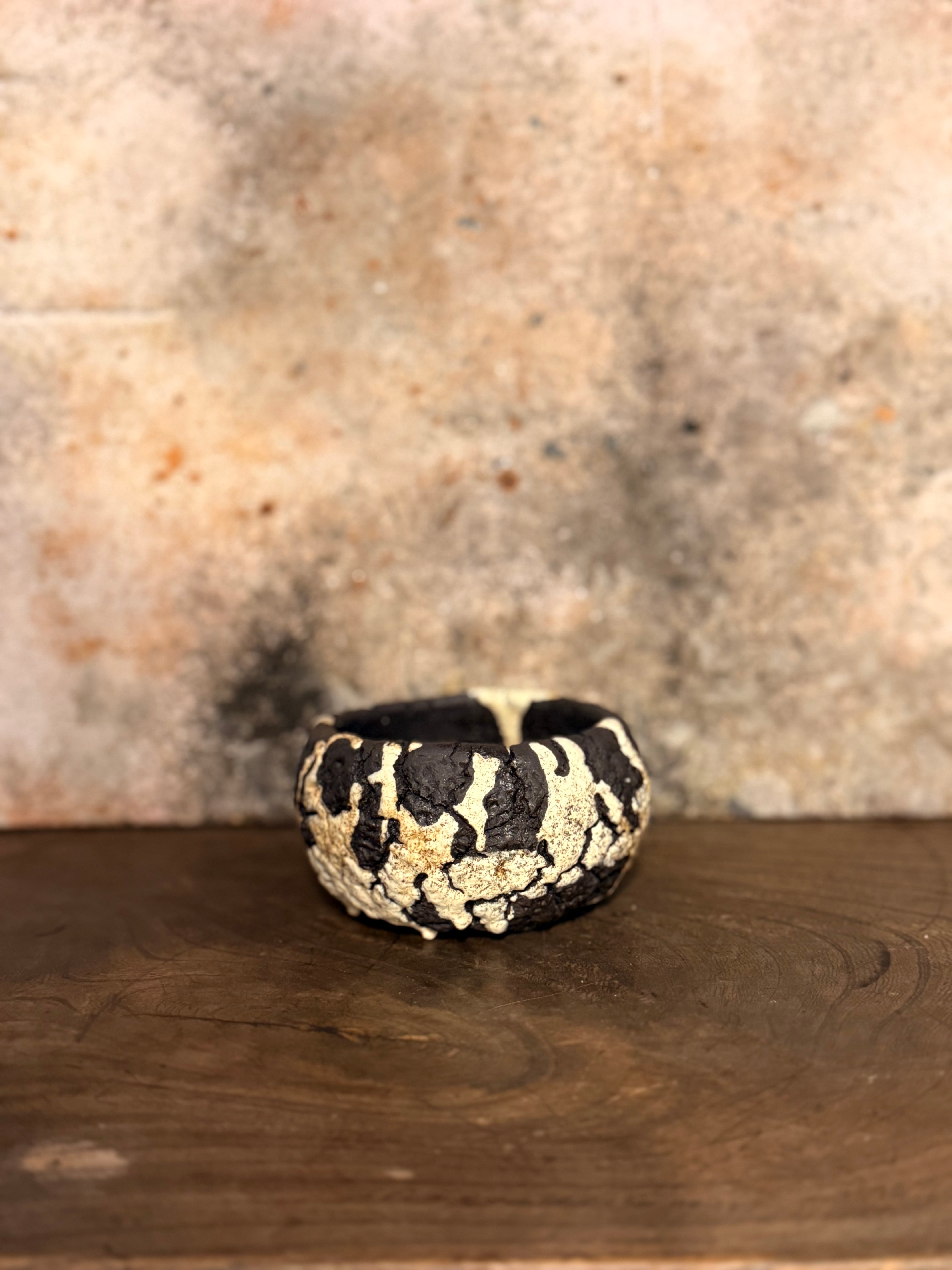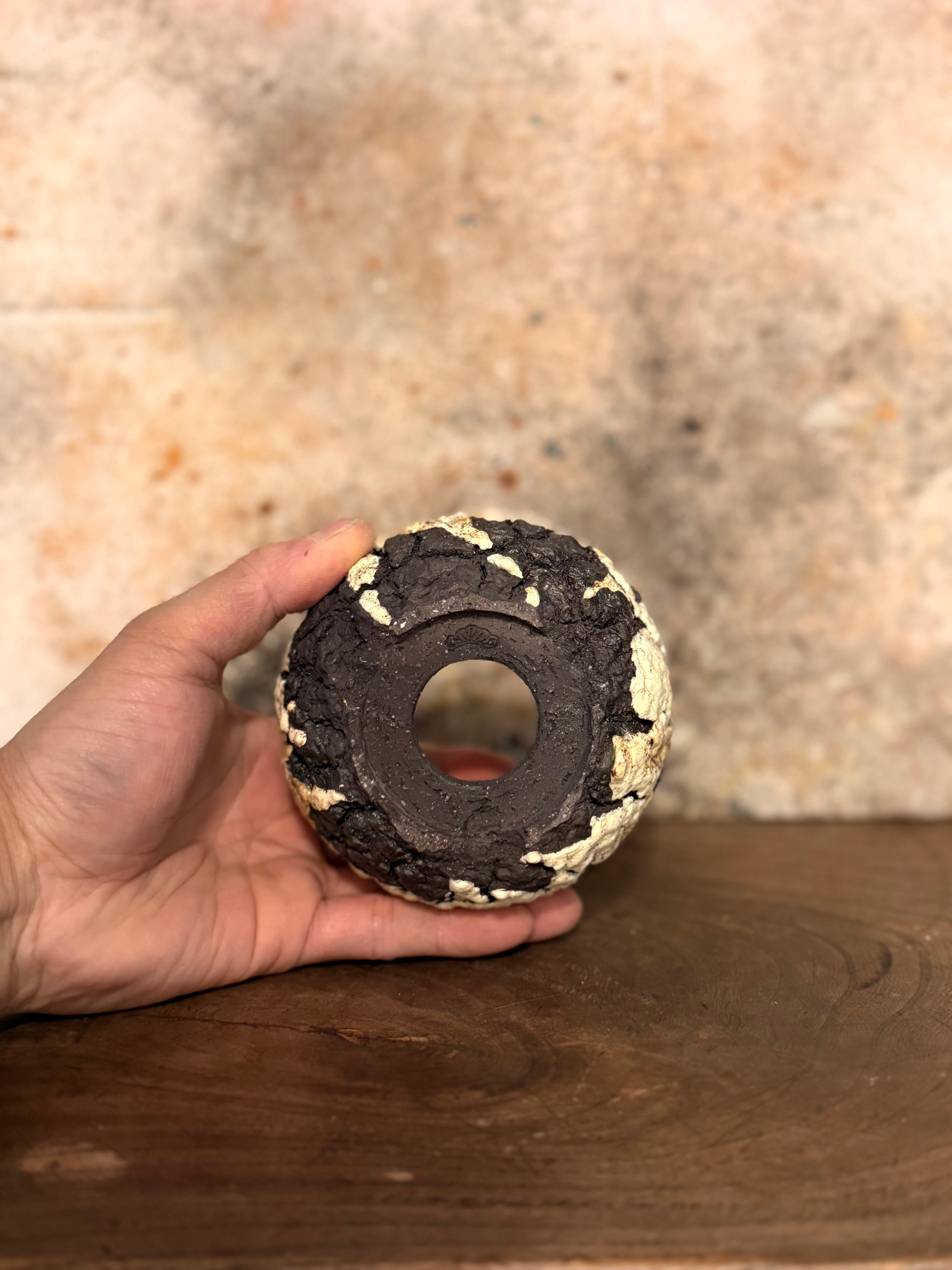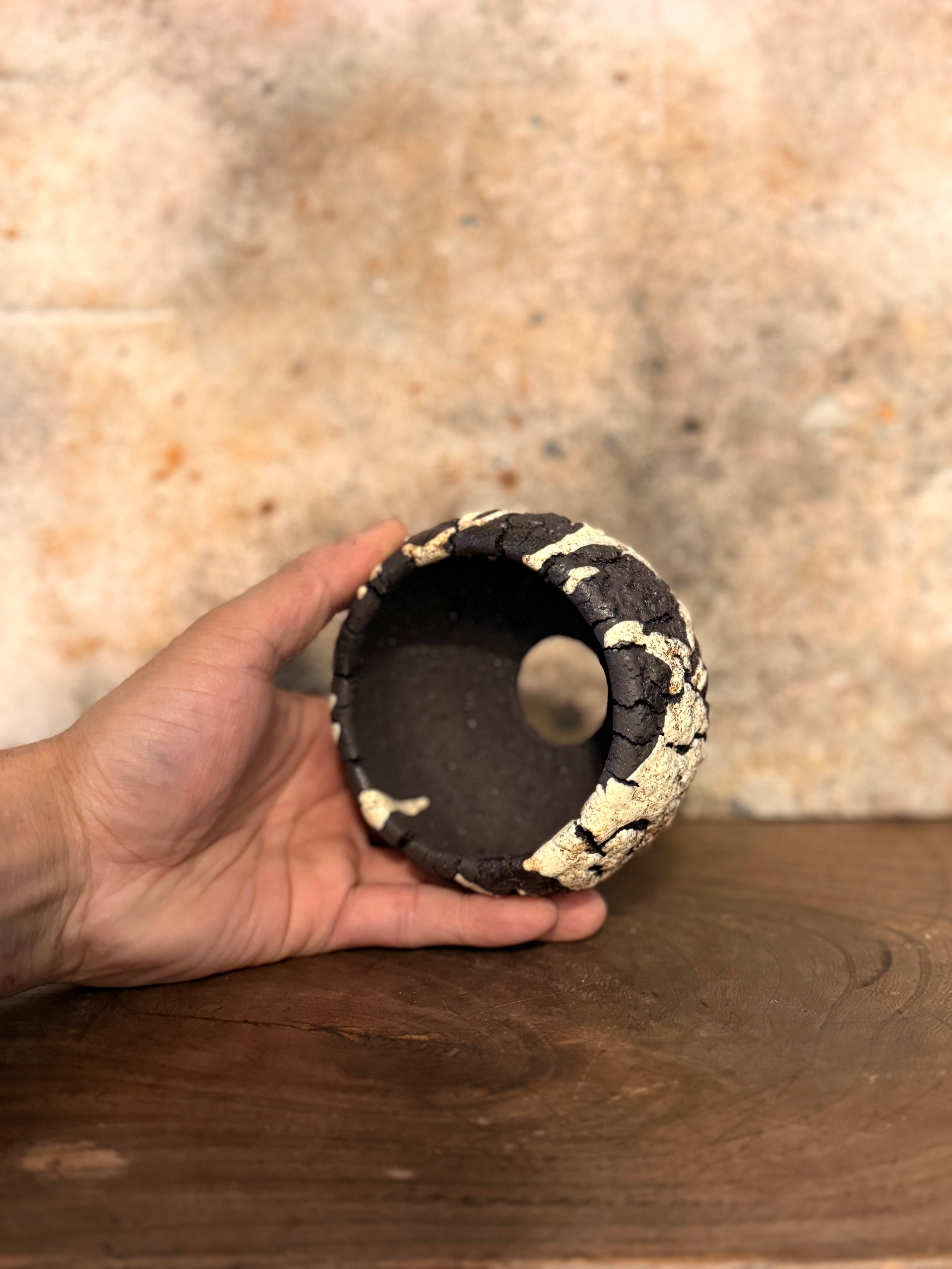 荒々しいテクスチャーですが丸みを帯びたフォルムに仕上げ、力強さと優しさを兼ね備えた印象を与えてくれる鉢です。