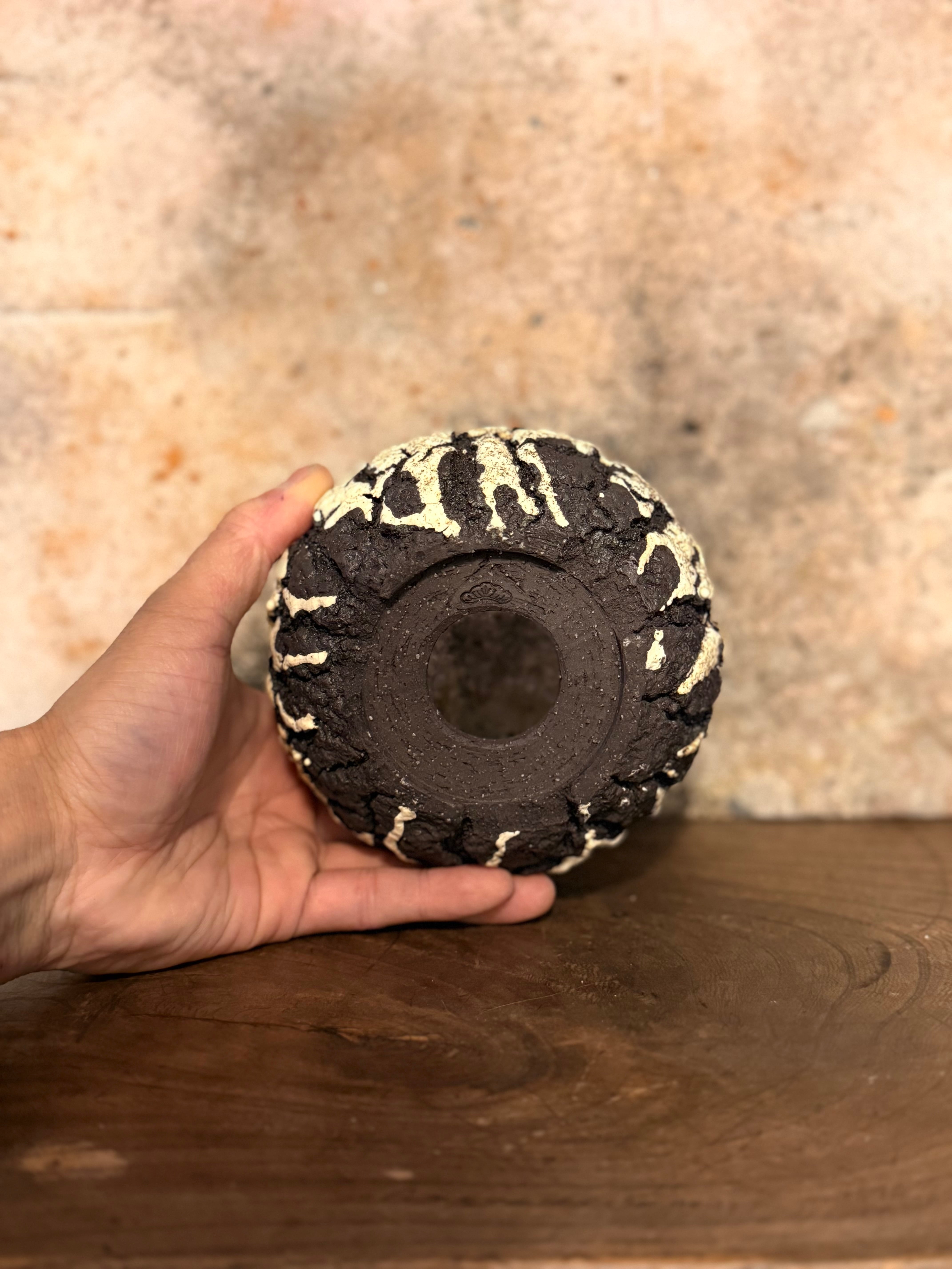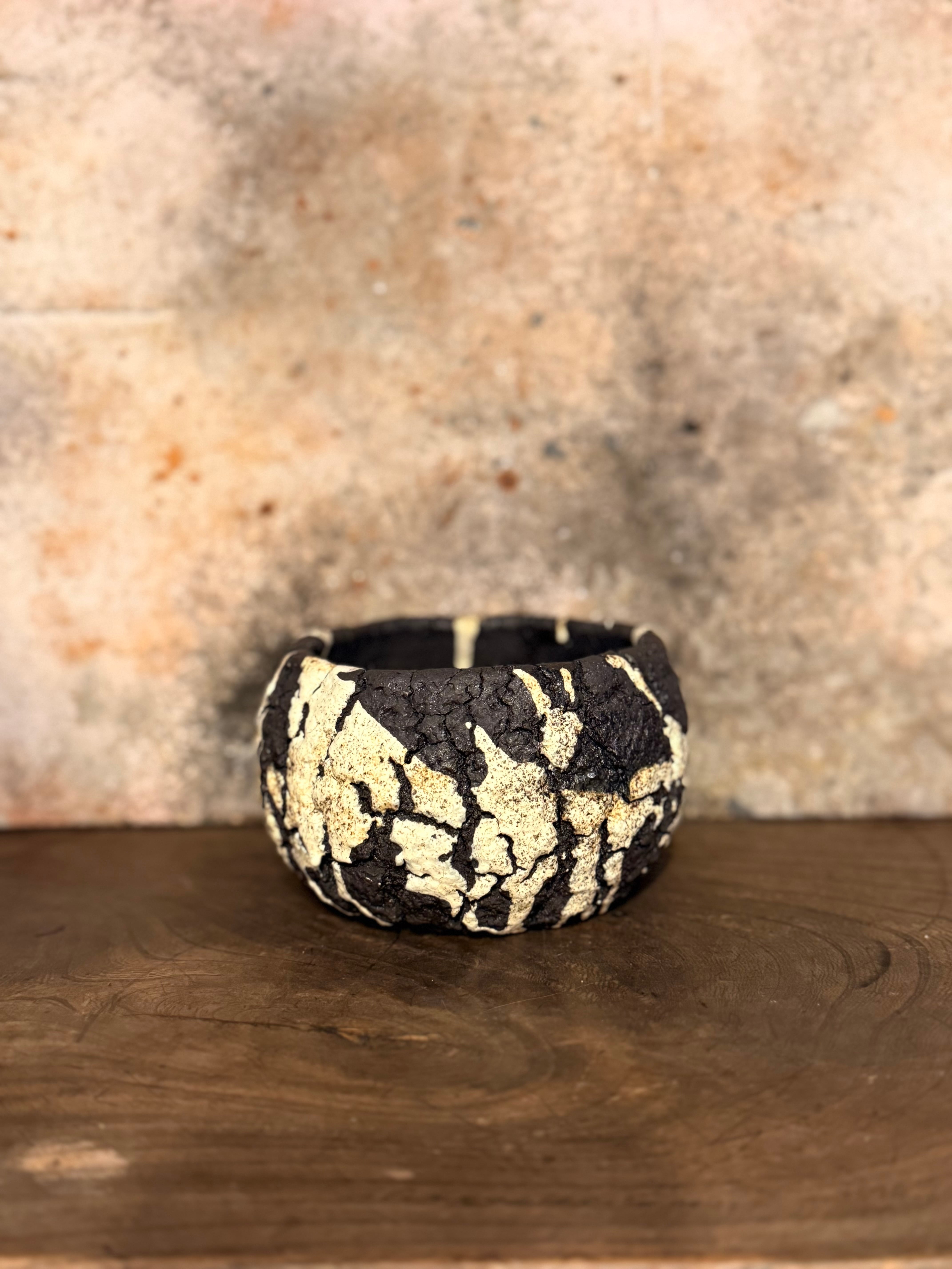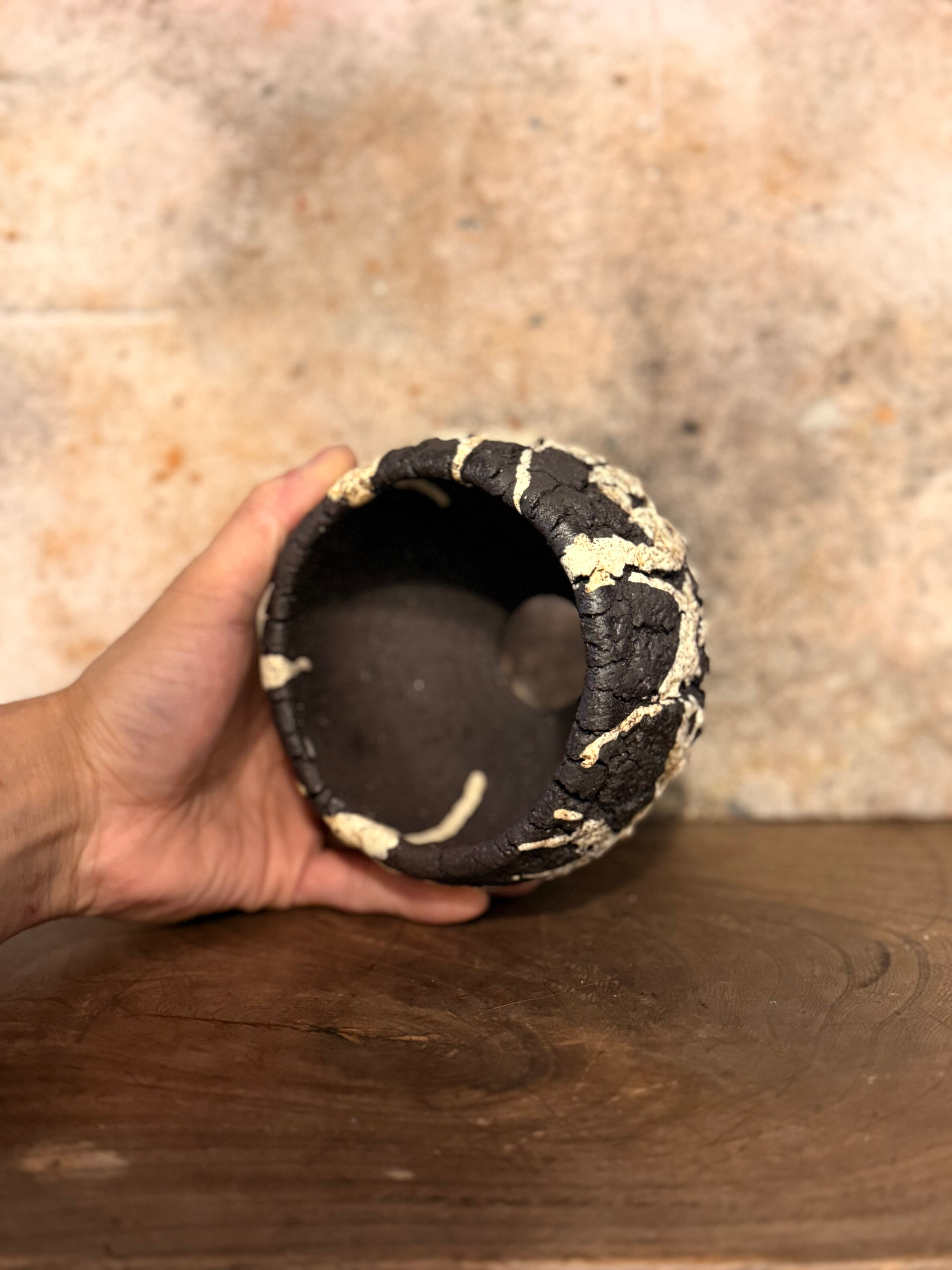 荒々しいテクスチャーですが丸みを帯びたフォルムに仕上げ、力強さと優しさを兼ね備えた印象を与えてくれる鉢です。