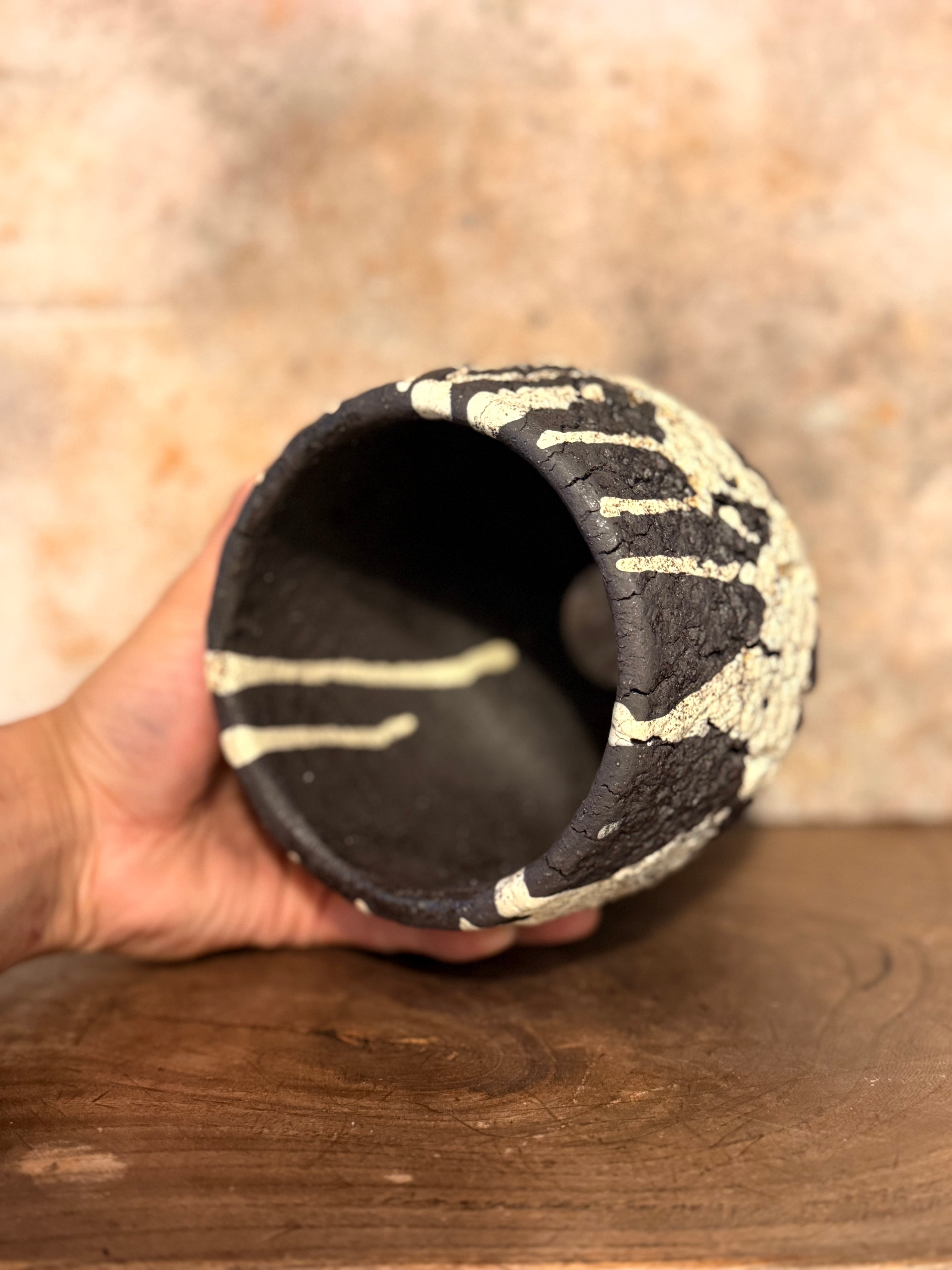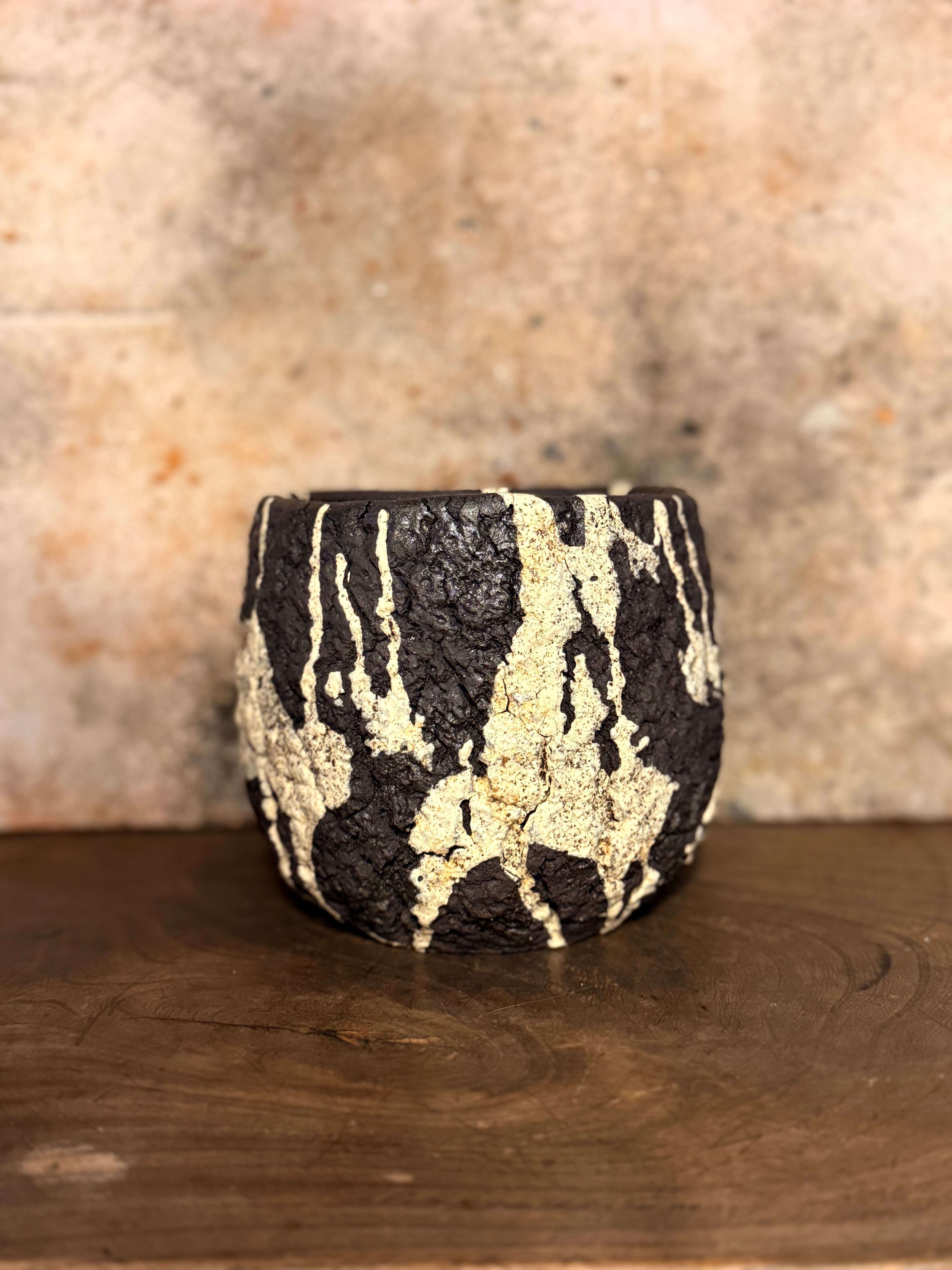 荒々しいテクスチャーですが丸みを帯びたフォルムに仕上げ、力強さと優しさを兼ね備えた印象を与えてくれる鉢です。